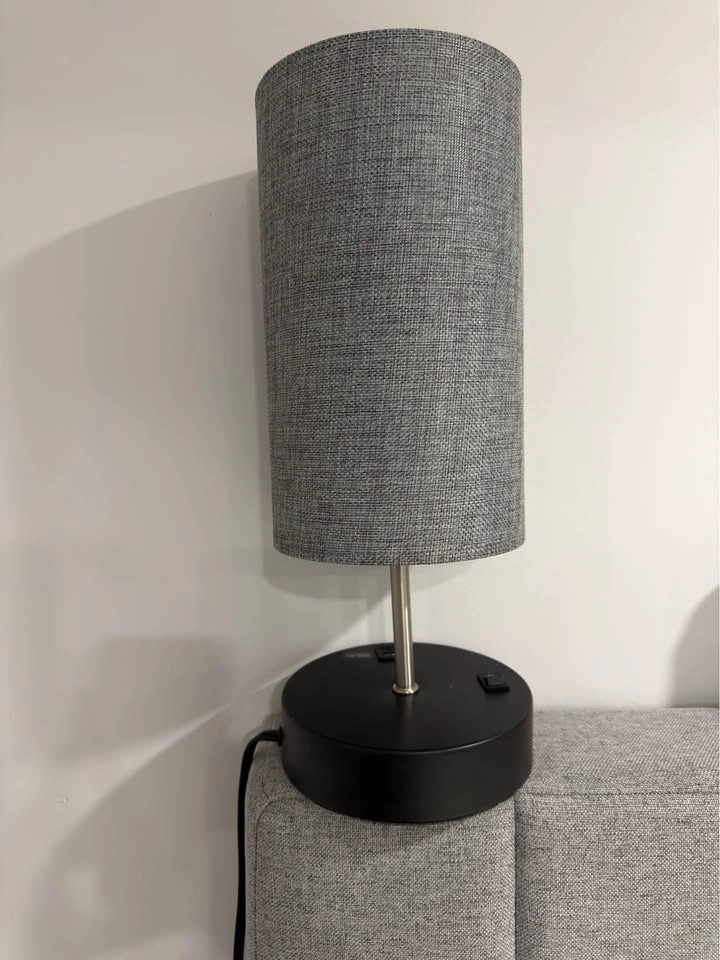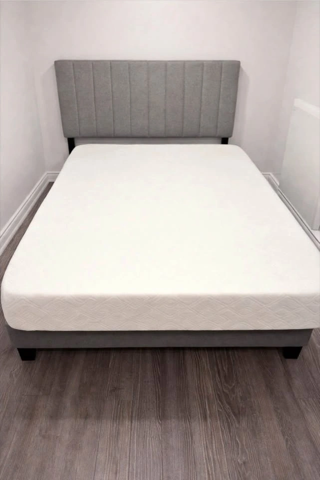 Selling a double size bed bundle that includes the bed frame, box spring and mattress. Everything is in very good condition and has been well maintained. The frame has a modern grey upholstered headboard and platform design. Comes with a free matching lamp. Mattress: Simmons 8" Memory Foam. Specifications: 2 in. Gel memory foam, 2 in. Motion Separation Layer, 4 in. Supportive Base Layer.