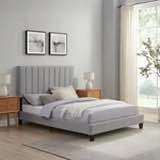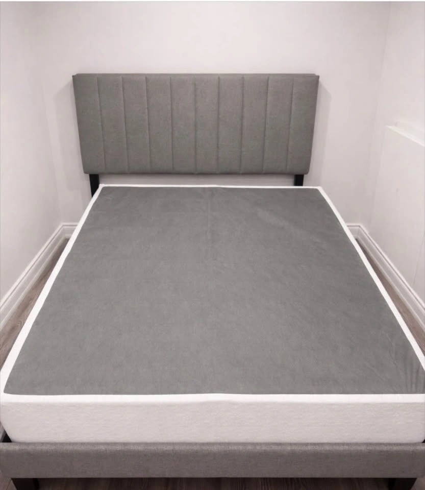 Upholstered Platform Bed - Double - Medium Grey w/ Box Spring &