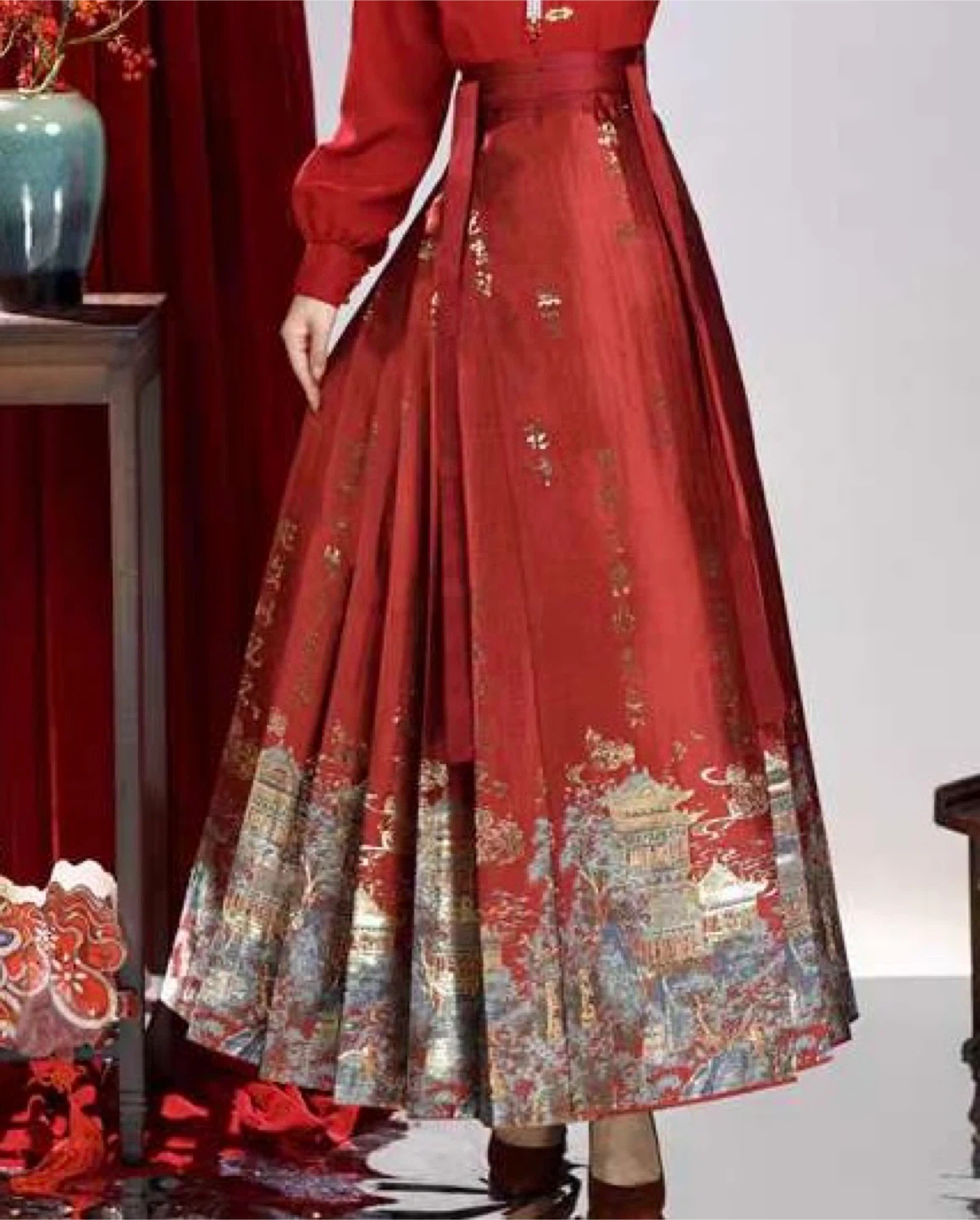 Hanfu Style Pleated Skirt Traditional Print Horse-face skirt