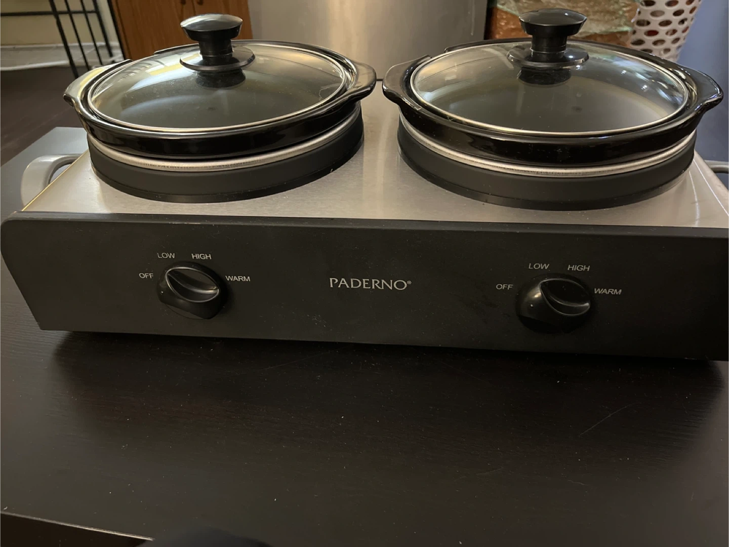 Selling a Paderno double slow cooker! It's in great shape and ready to make some delicious meals. It has two separate cooking pots, each with its own temperature control. Perfect for keeping food warm for parties or cooking multiple dishes at once!