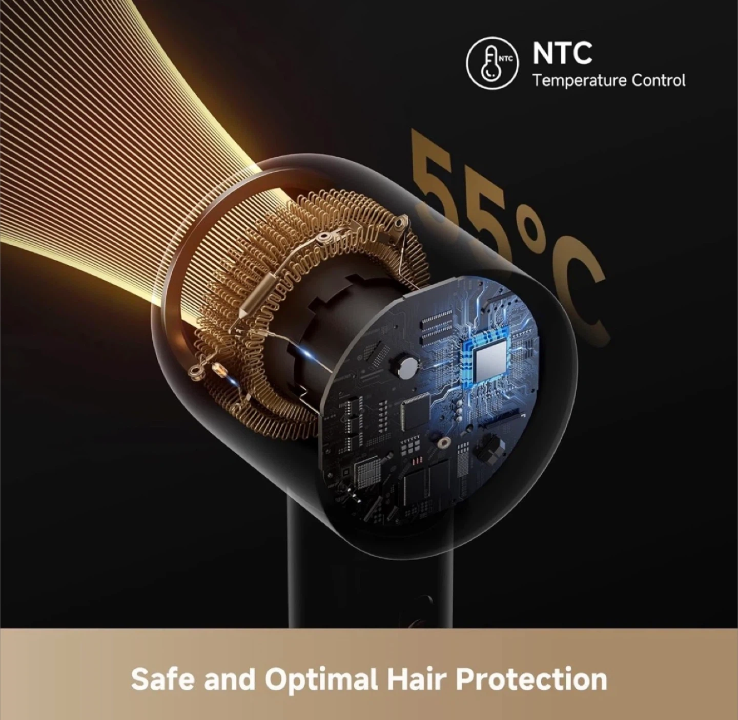 • Hair Protection and Styling: Smart heat control prevents damage, and 360° rotating nozzles offer versatile styling options.