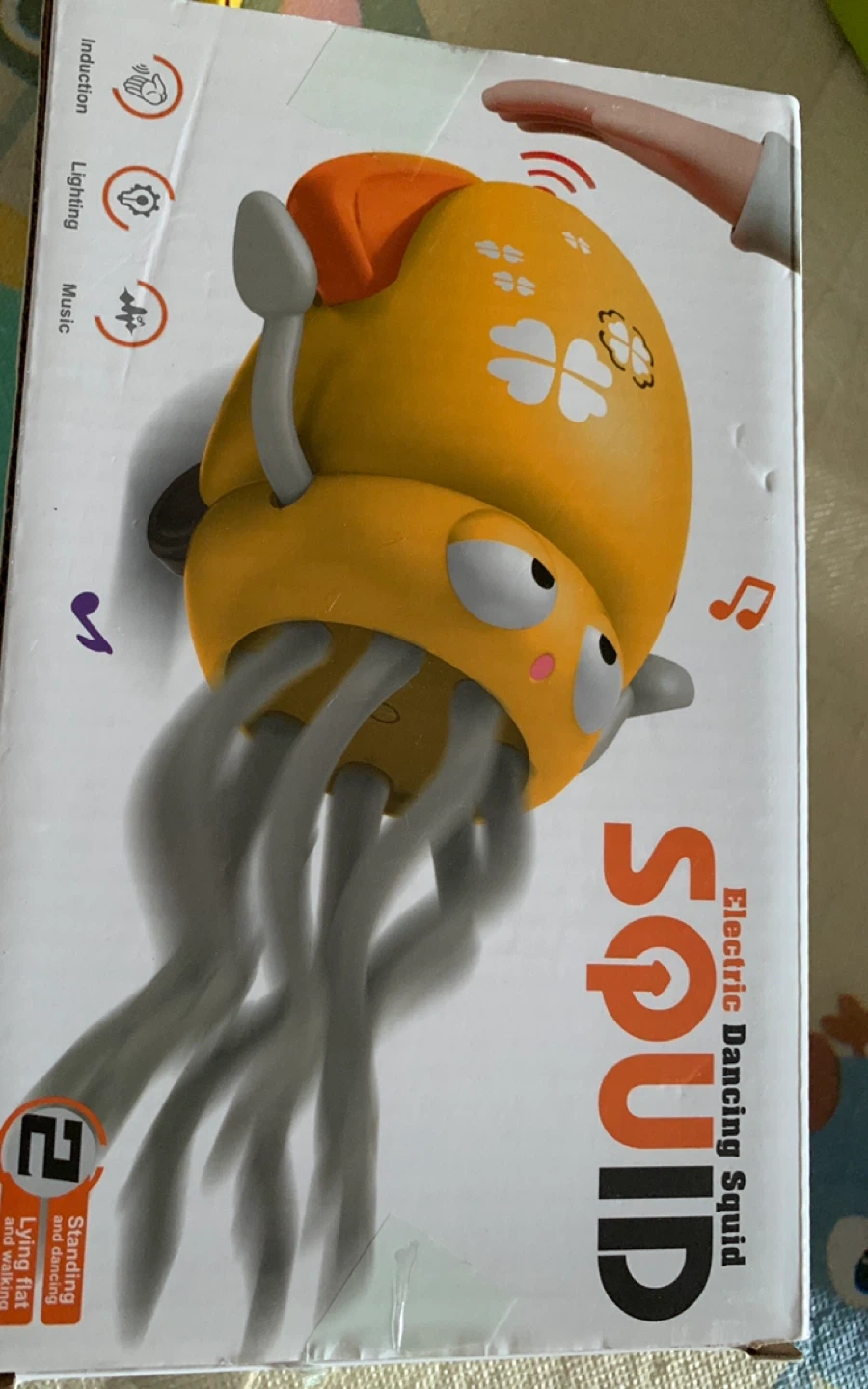 This electric dancing squid toy has induction, lighting, and music functions. It can stand and dance, or lie flat and walk. It's a fun toy for kids!