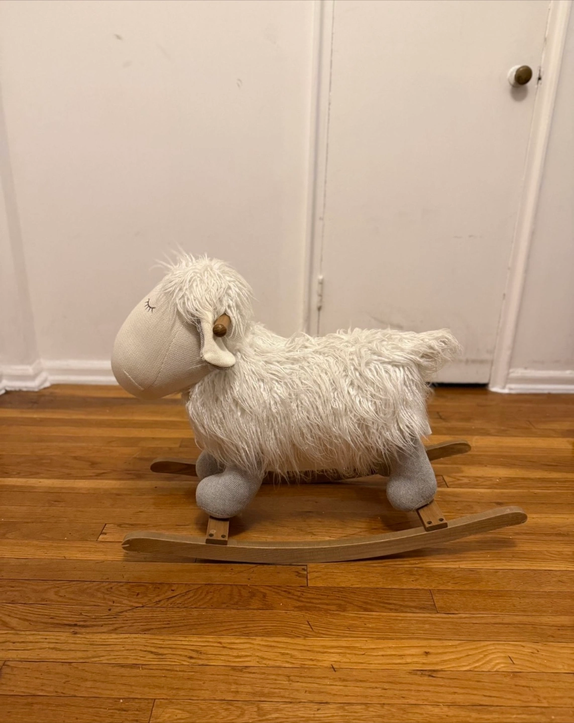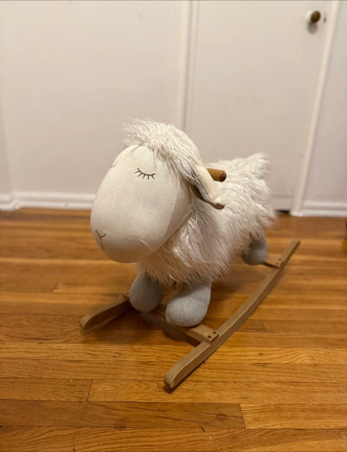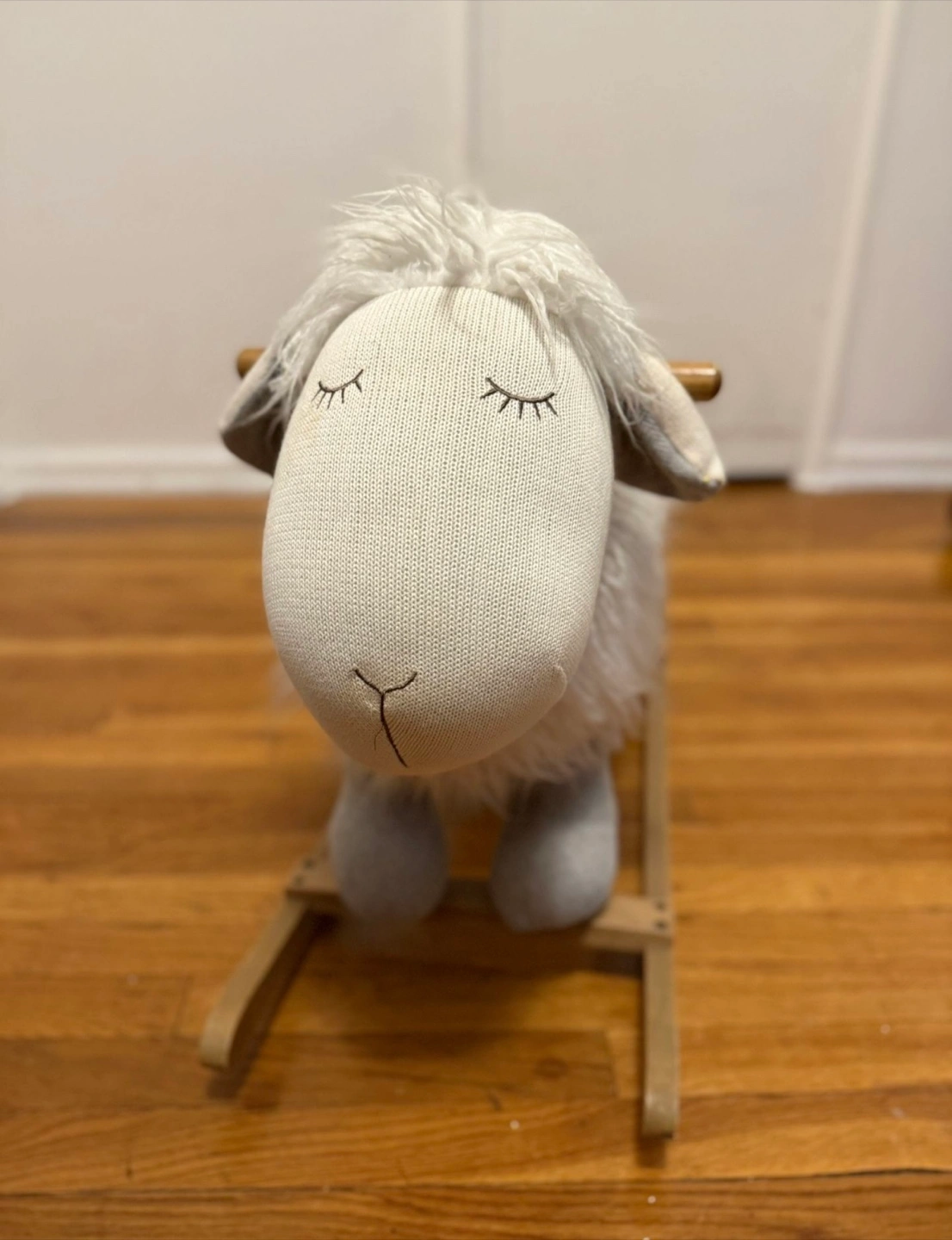 I'm selling a gently used rocking lamb from Baby & Child (Restoration Hardware). It's in great condition and ready for a new home. This adorable rocking lamb is perfect for little ones and adds a touch of charm to any nursery or playroom