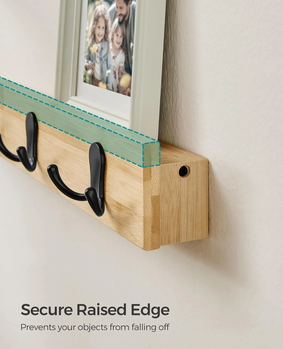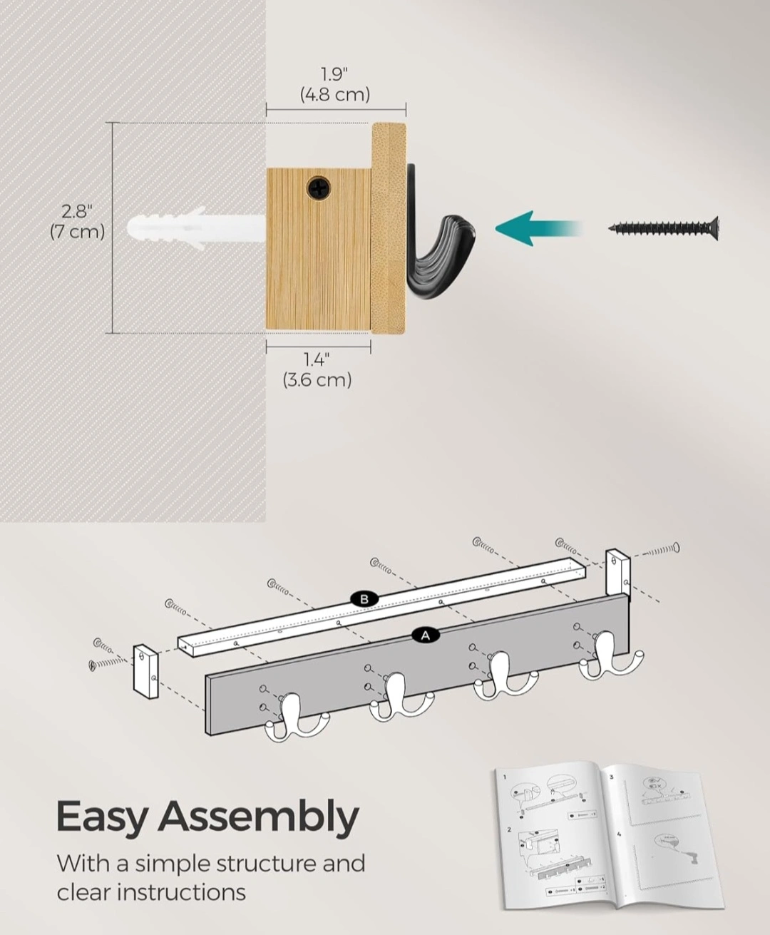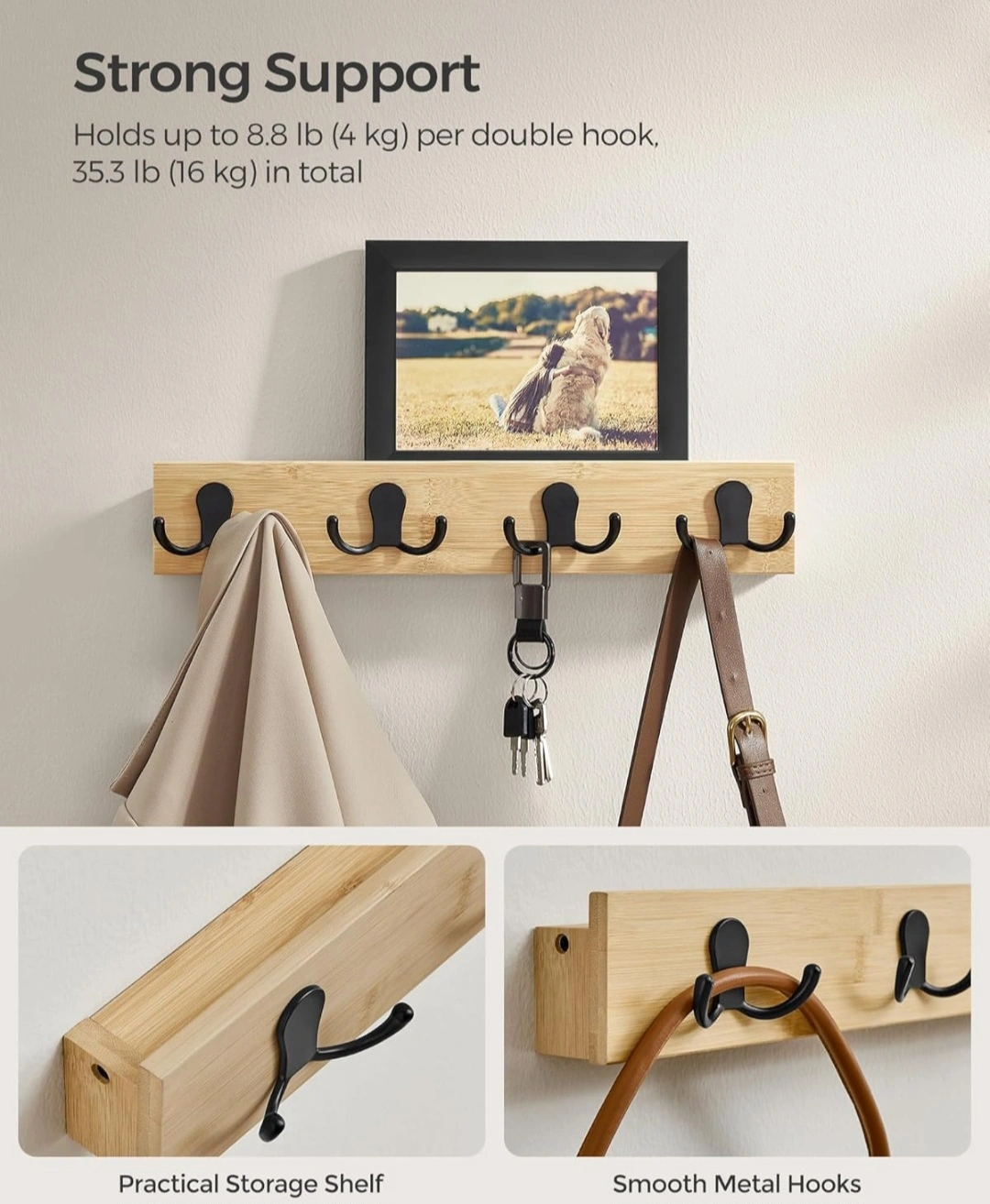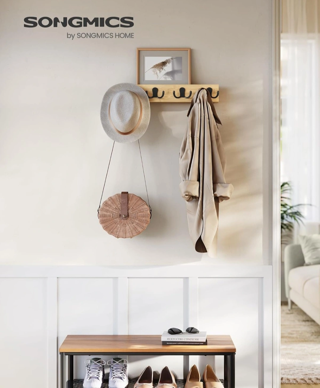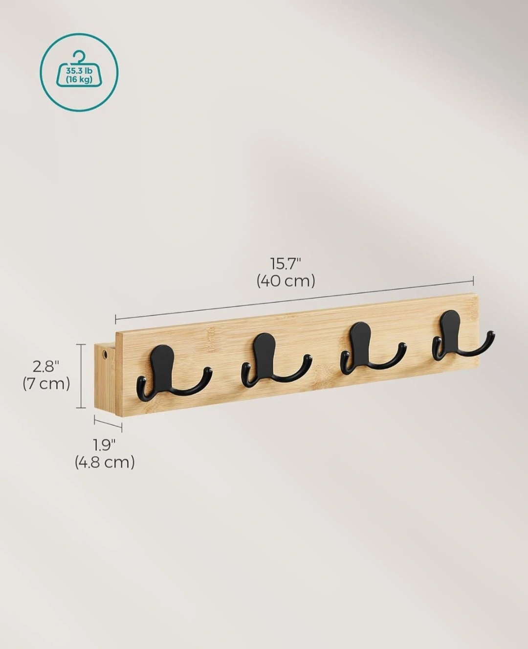 SONGMICS Coat Rack Wall Mount, 4 Double Metal Hooks, Loads up to 35.3 lb, Natural Beige ULCR006N01. (xx5)