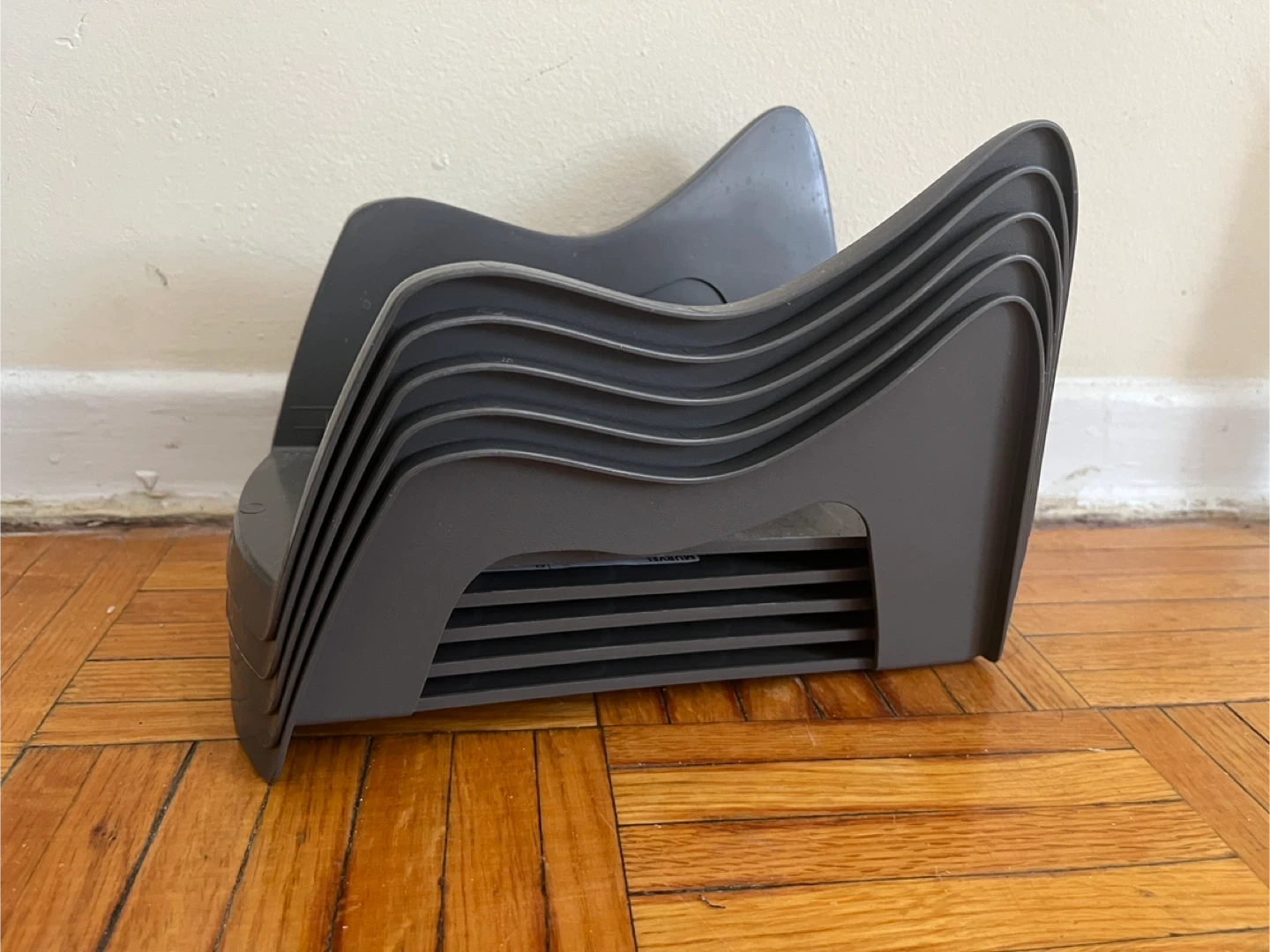 Set of durable plastic shoe organizers. Great for keeping shoes neatly stored in closets or entryways. Stackable design helps save space and keeps your shoes easy to access.