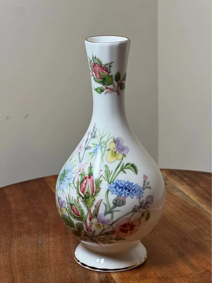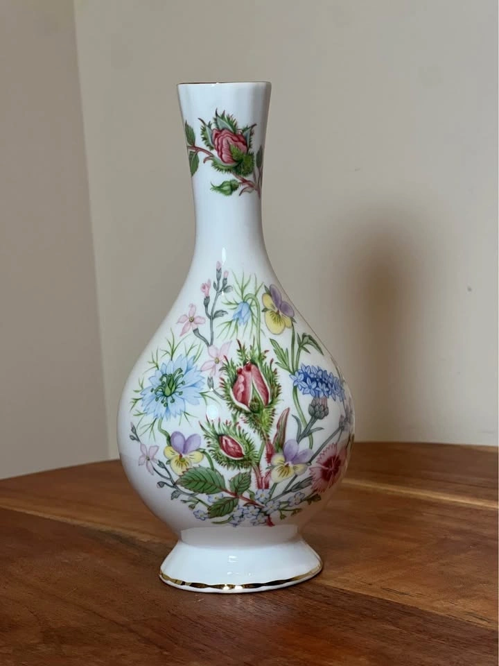 Aynsley "Wild Tudor" Globe Bud Vase - Bone China