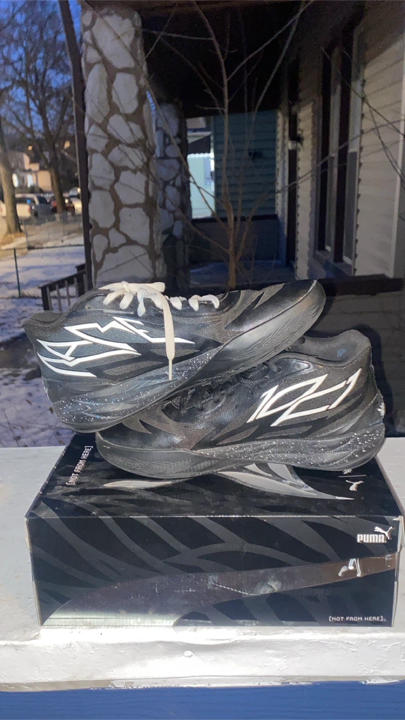 Puma MB.02 basketball shoes in black with white accents. Comes with the original box. These shoes are designed for performance on the court.i accept