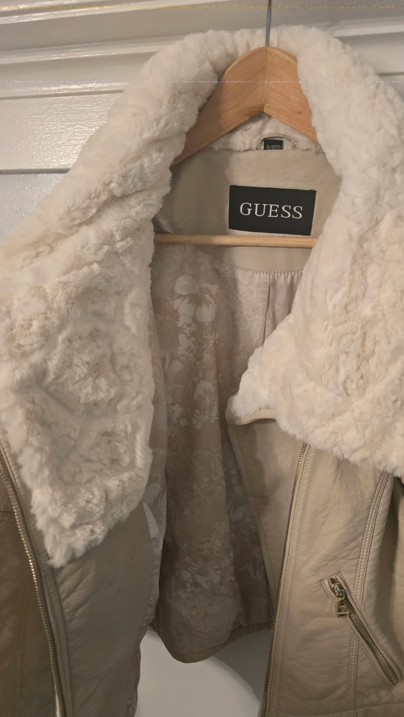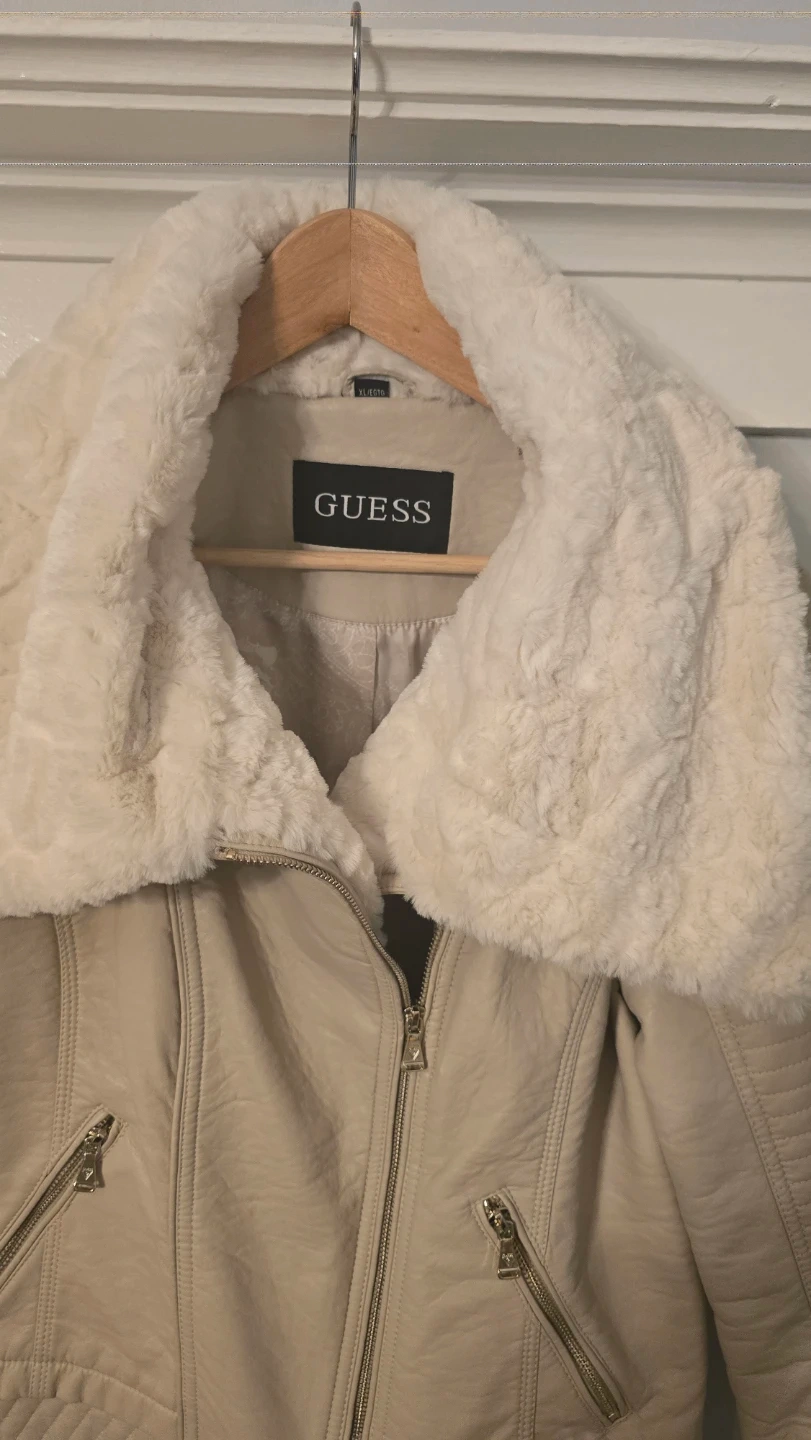 Selling a Guess faux leather jacket with a cozy faux fur collar! It's a stylish piece that adds a touch of warmth and flair to any outfit. Perfect for layering during cooler weather
