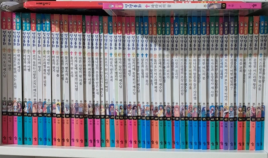 68I'm selling a set of Korean Bible story book.. They're in great condition and perfect for kids! I can't see about 3 out of 62 books. If I find it, I'll give it to you together. ㅡ 총 62권 중 3권 정도가 안보이네요. 찾으면 같이 드리겠습니다.