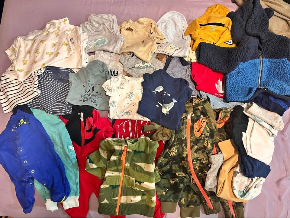 Sold by bundle. Branded new born clothes. Nike, Carters, Others. Onesies with hood, sweaters (fleece), shirts and pants. Pick up cash only ๐