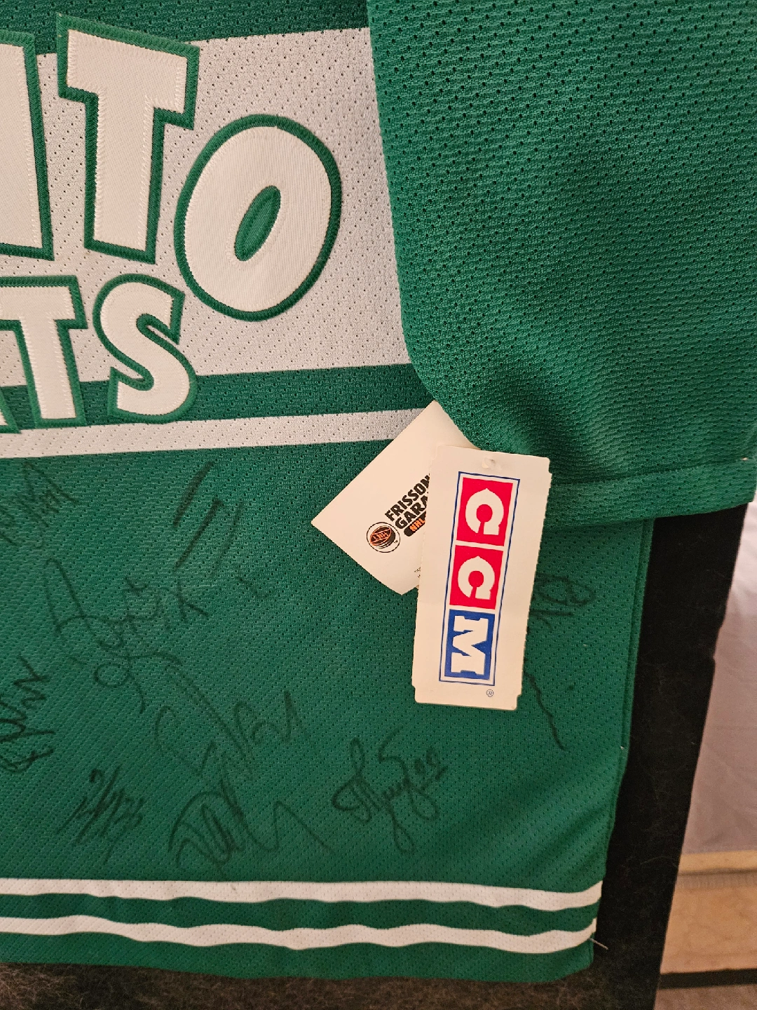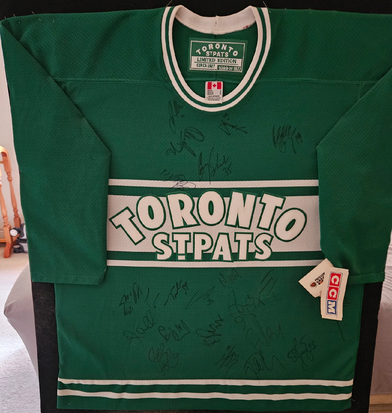 Selling a Toronto St. Pats hockey jersey by CCM! It's a limited edition jersey, circa 1927, and numbered 1099 of 1927. It has been autographed. A great piece for any hockey fan! Personally signed at Lakeshore lions arena in Etobicoke where the Toronto Maple Leafs used to practice in 02/03. Limited edition jersey as only 1927 CCM blanks produced. Team signed minus Domi and cujo. Willing to meet at any sports memorabilia shop to verify authenticity. Pick up in Etobicoke or will ship *IF THE AD IS UP IT'S AVAILABLE* Never thought id sell but life got in the way.