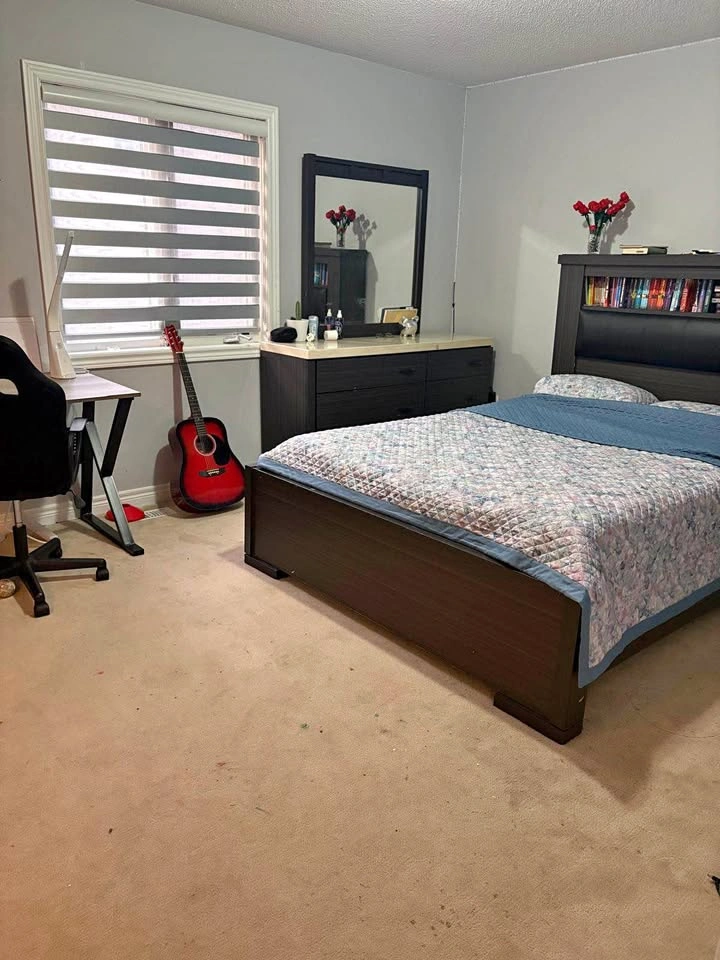 Only for girls !! Its available now. Itss upper floor It’s a shared bedroom with a girl, and the washroom is attached but shared with a couple. The girl will be leaving in November, so after that you can either bring someone with you or we can help find another girl to share the room. Parking available!