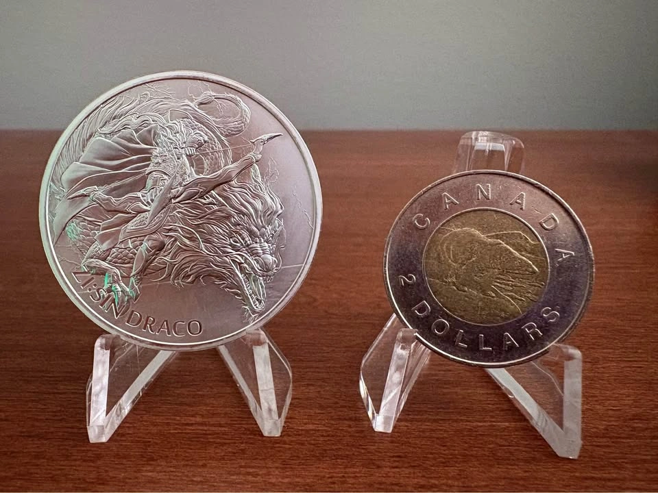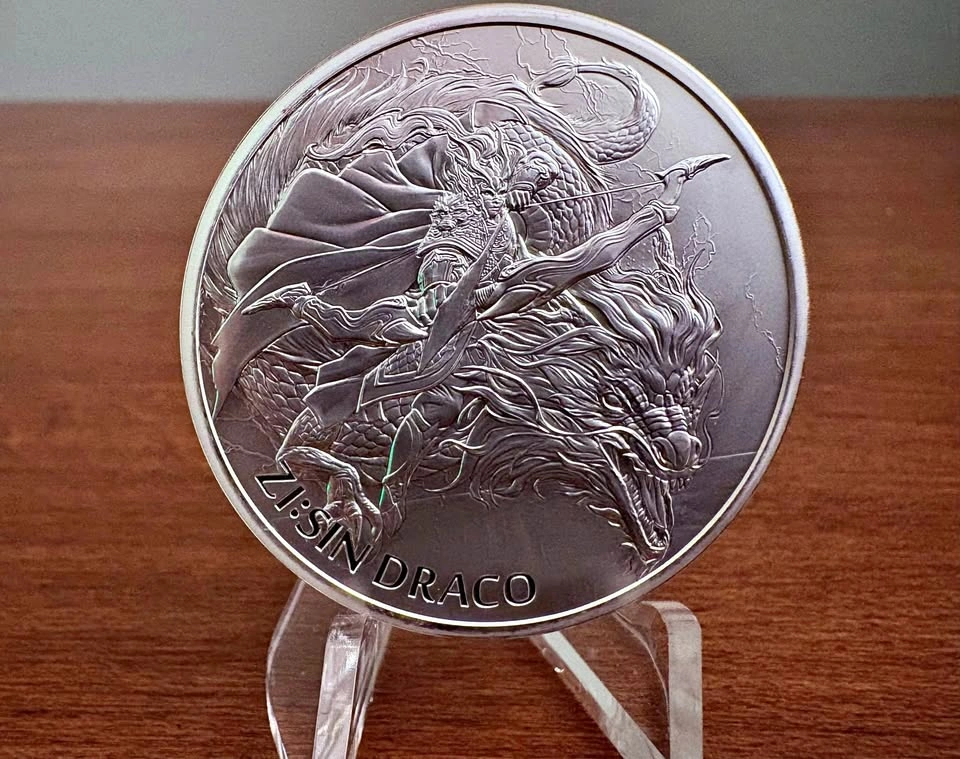 651 oz .999 pure/fine silver bullion 2024 ZI:SIN “Draco” round in brilliant uncirculated condition. ZI:SIN are the Twelve Guardians assigned to protect twelve directions. They serve protection to the world against evil forces from twelve directions at all times. This issue features Draco, the fierce dragon guardian of Emperor Chiwoo. Highlights: • Minted at KOMSCO, the mint of South Korea, with a limited mintage of 30,000. • Contains 1 oz of .999 fine silver. • Eighth issue of KOMSCO's ZI:SIN (Twelve Guardians) series. • Obverse: Features the Gwi-myeon-wa surrounded by the year-date, fineness and country of issue. • Reverse: Highly detailed depiction of the guardian Draco riding a fierce dragon into battle while drawing back an arrow to release. Sigma precious metals verifier certified, see photos. Can meet in public place in Maple Ridge. Include stand - add $3 Include hard protective capsule - add $3 The stand is too thick to be purchased in person. Thanks! Price can be subject to change with significant market fluctuations in silver spot price.