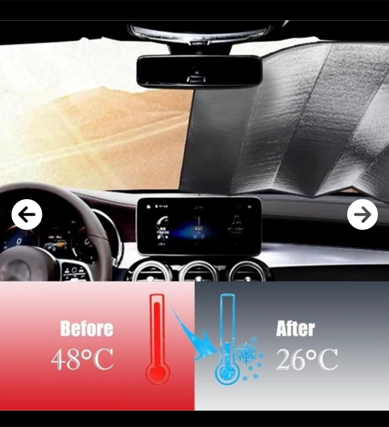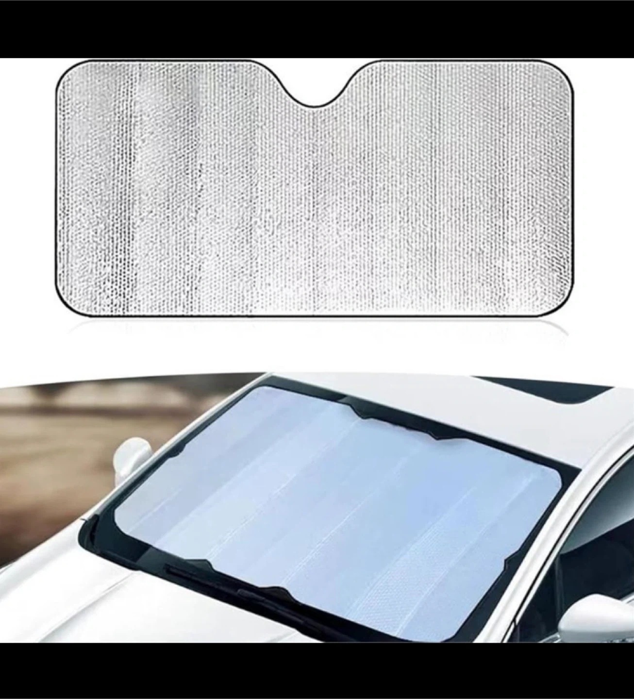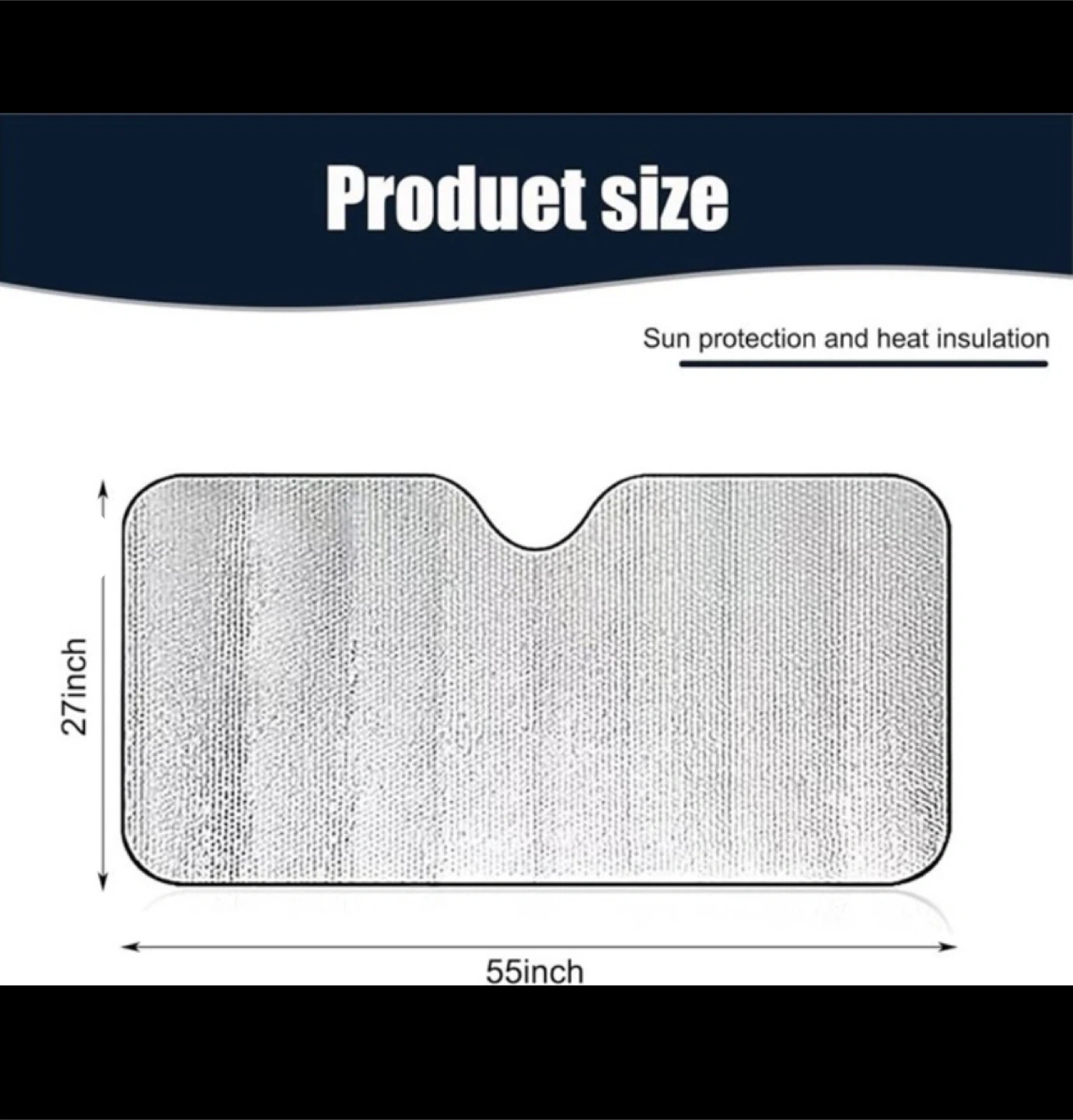 164Keep your car cool with this windshield sun shade! It measures 55 inches by 27 inches, providing great sun protection and heat insulation. Perfect for those hot summer days!