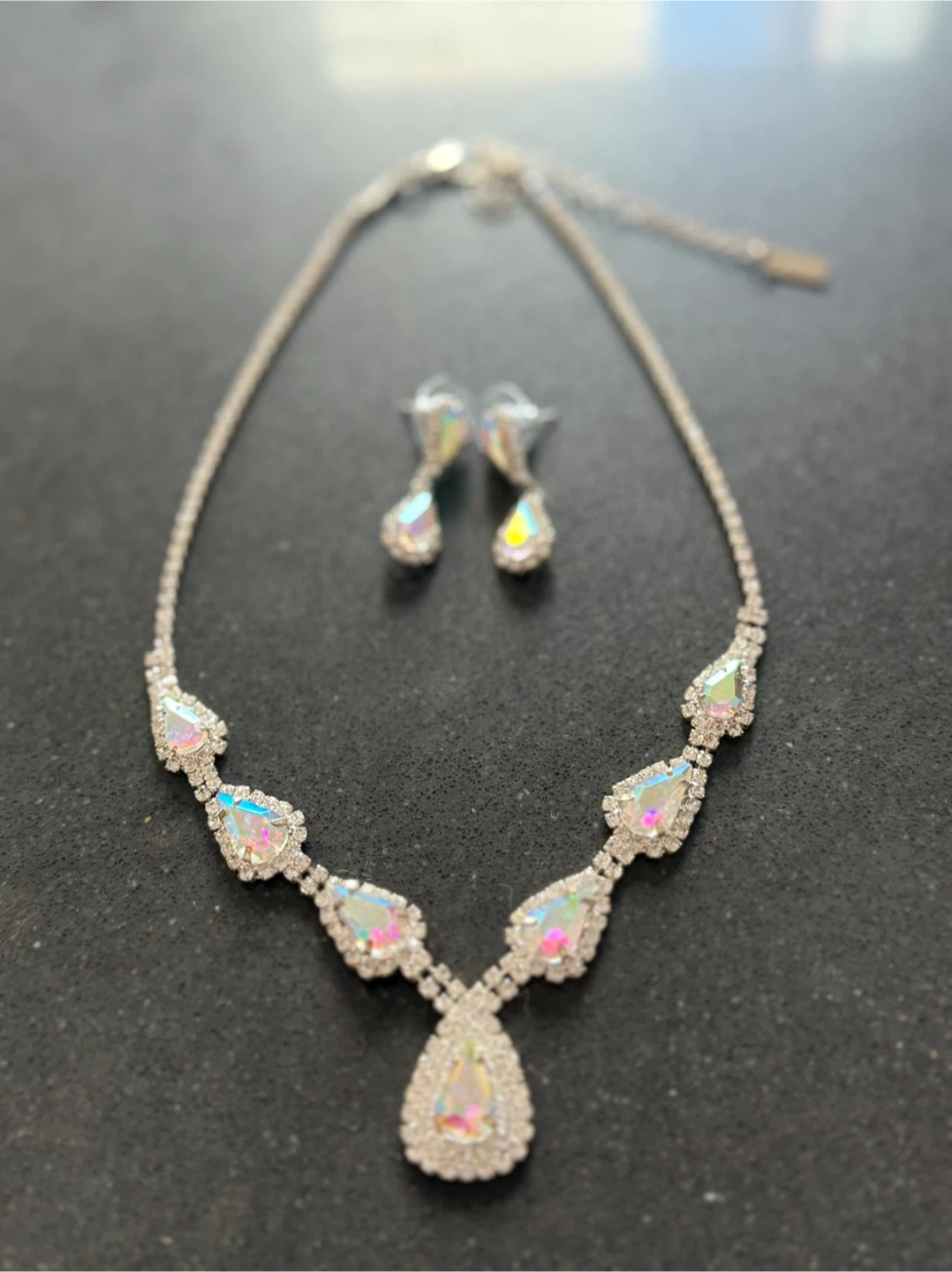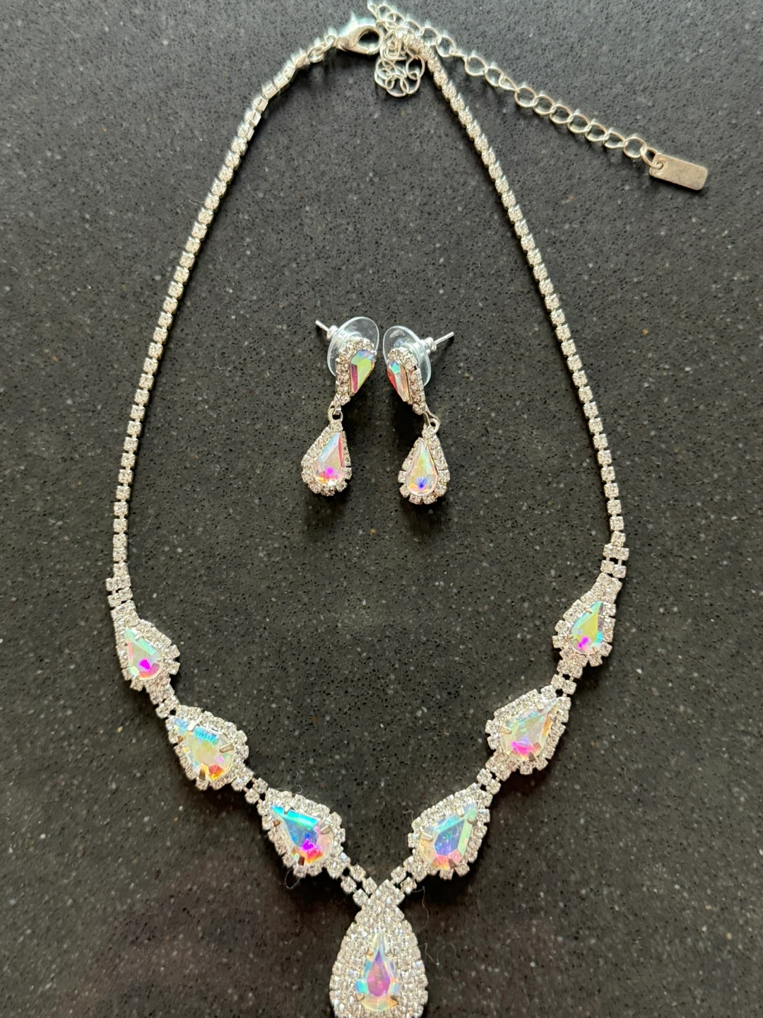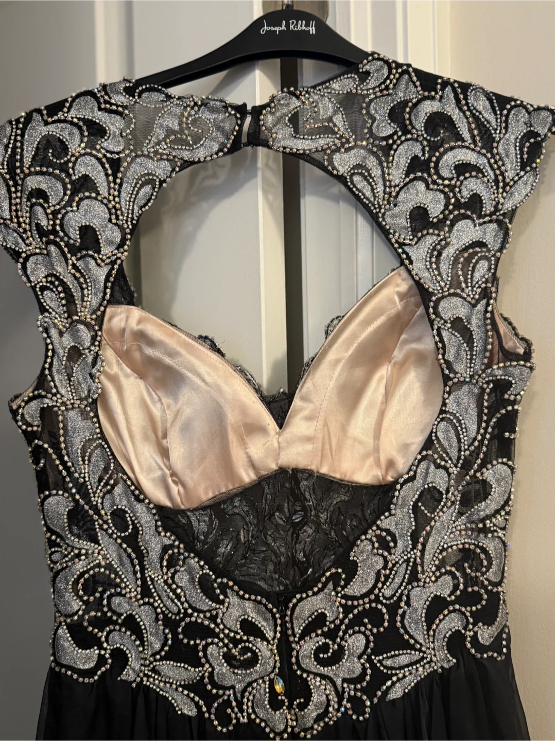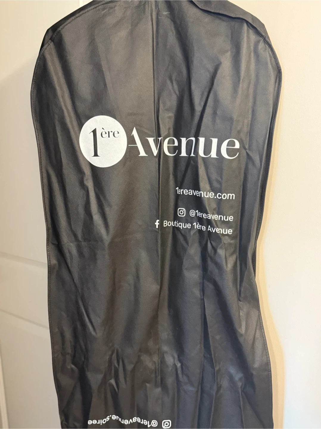 182Beautiful black gown from 1ère Avenue! It features intricate embellishments on the bodice and a flowing skirt. Perfect for a special occasion! With the collar and earrings. Dress size 10, used one time for special event. All for 50$ Pickup only