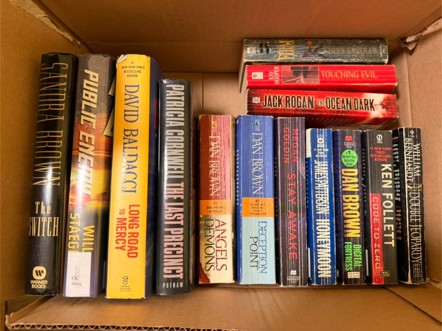 $10 for Box of 14 Mystery / Thriller Novels Selling a box of 14 mystery / thriller novels! Includes titles: - The Switch by Sandra Brown - Public Enemy by Will Staeger - Long Road to Mercy by David Baldacci - The Last Precinct by Patricia Cornwall - Angel & Demon by Dan Brown - Deception Point by Dan Brown - Digital Fortress by Dan Brown - Stay Awake by Megan Golden - Honeymoon by James Patterson - Code to Zero by Ken Follett - Double Jeopardy by William Bernhardt - The Firm by John Grisham - Touching Evil by Kay Hooper - The Ocean Dark by Jack Rogan In like new to good condition. Perfect for anyone looking to expand their reading collection. $2 each and $10 for all Clean, smoke free home Pick up in North Ajax