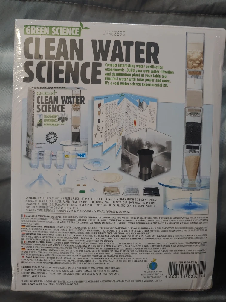 I'm selling 10 Green Science Clean Water Science kit. It's a cool water science experimental kit. Conduct interesting water purification experiments. Build your own water filtration and desalination plant at your table top; disinfect water with solar power and more, $15 each