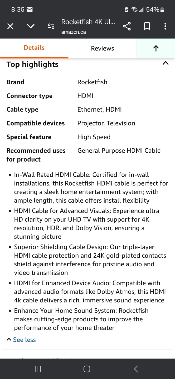 10' Rocketfish High Speed HDMI. In wall quality. Thick.