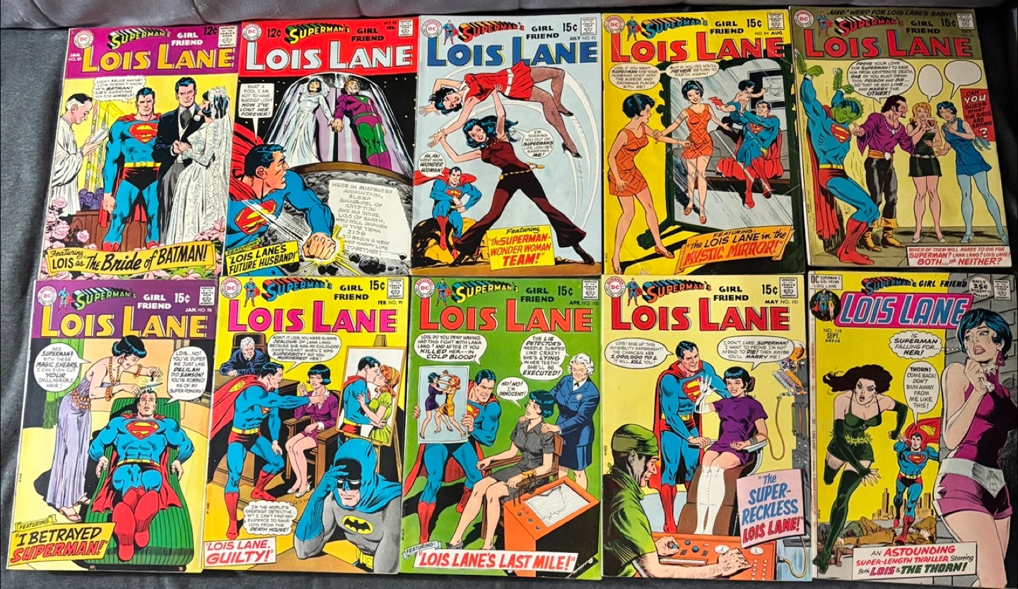 10 Superman‘s girlfriend Lois Lane comics from 1969 to 1971 #89,90,93,94,96,98,99,100,101,114 All are in great condition with just # 94 being in fair condition $100 for all 10 comics