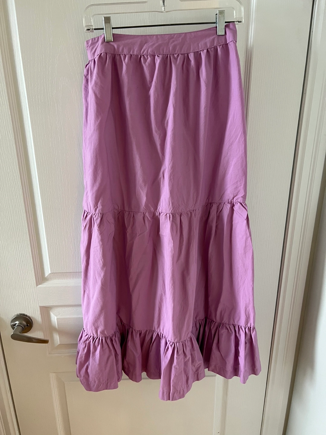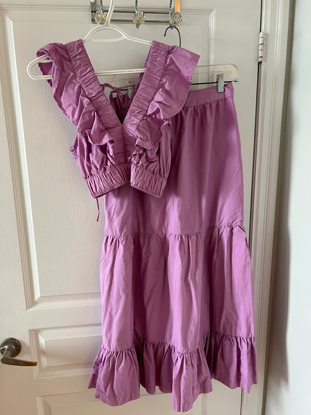 A cute lilac matching set! Includes a ruffled crop top and a tiered maxi skirt. Both pieces are in great condition and ready for a new home. Size Medium. Worn once. 100% cotton. Smoke and pet free home.