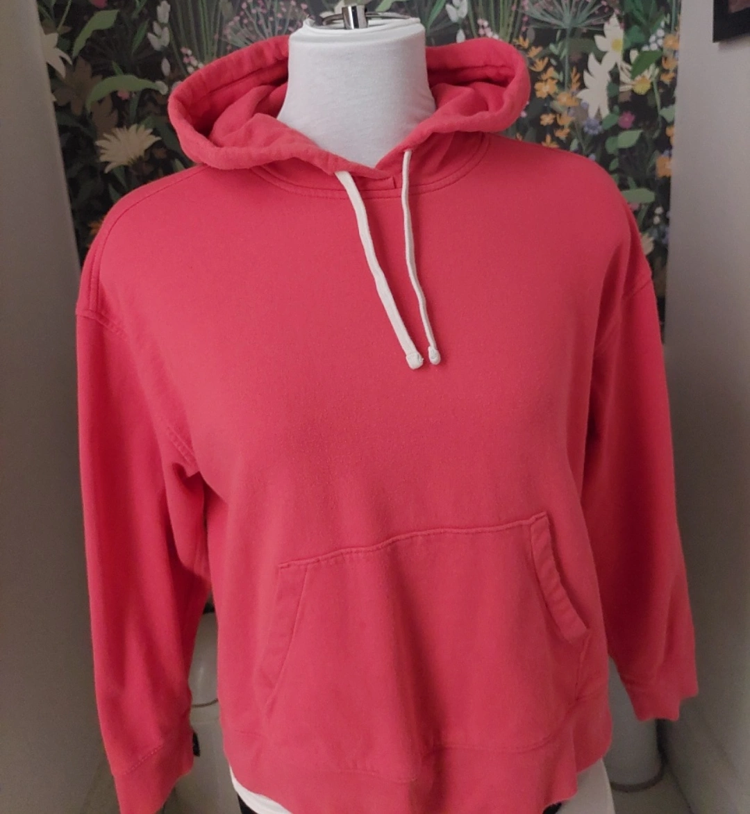 Pink hoodie with a single front pocket and white drawstrings. Size XL. Recently laundered. From a clean smoke - and pet free home . Downsizing our family closet. Great pieces in excellent condition. Please bowse through my other listings. Discount applies to bundling.