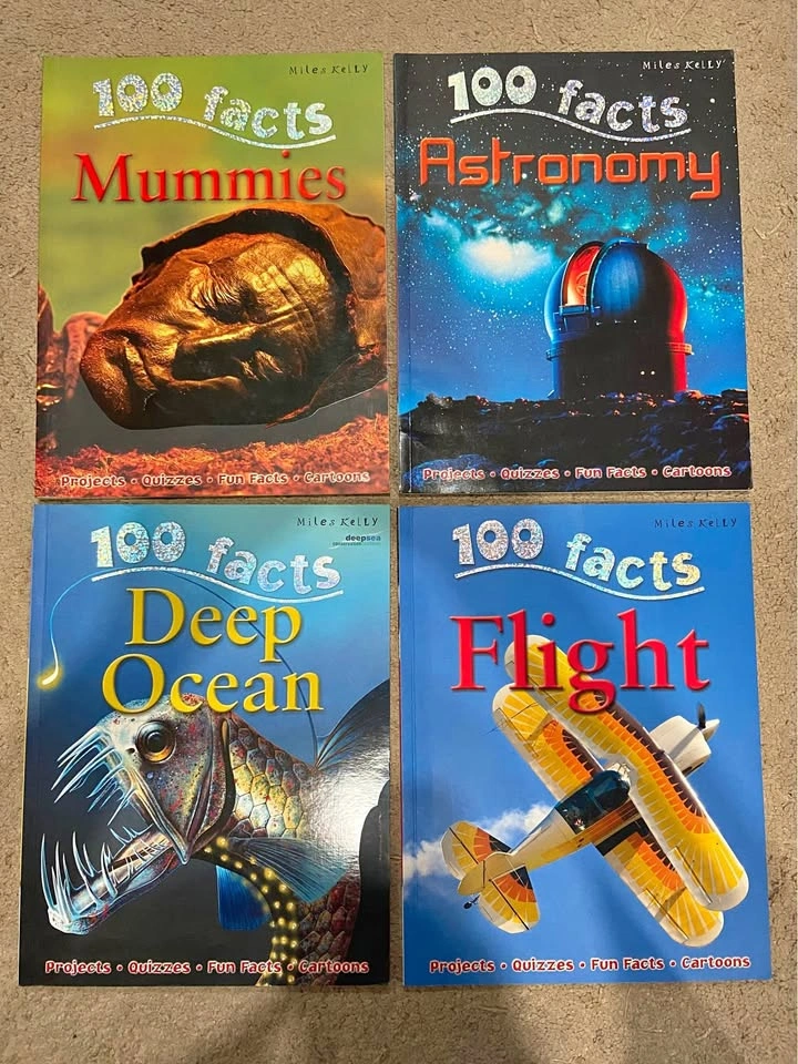 15- 4 Books, Slightly Used. - Pretty Good Condition. - 100 Facts - Mummies, Astronomy, Deep Ocean, & Flight. - Cash Only.