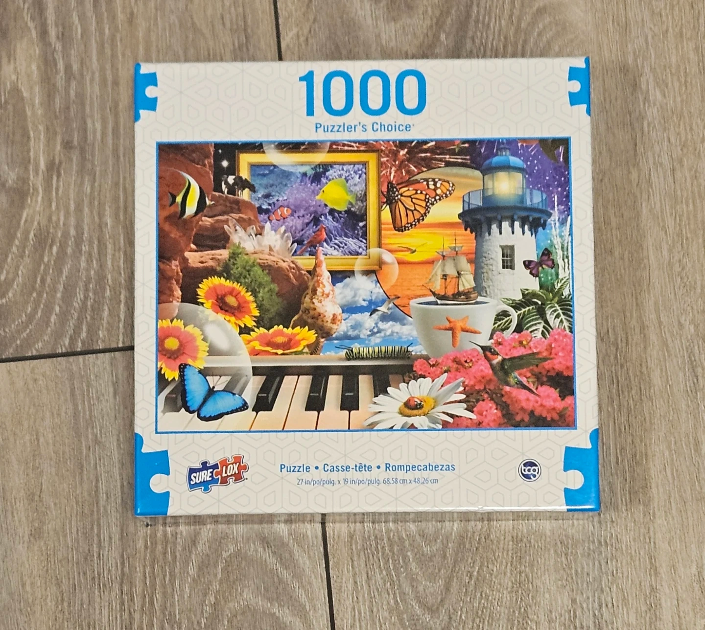 272Sure-Lox 1000-piece jigsaw puzzle - Puzzler's Choice. The dimensions are 27 in x 19 in (68.58 cm x 48.26 cm).