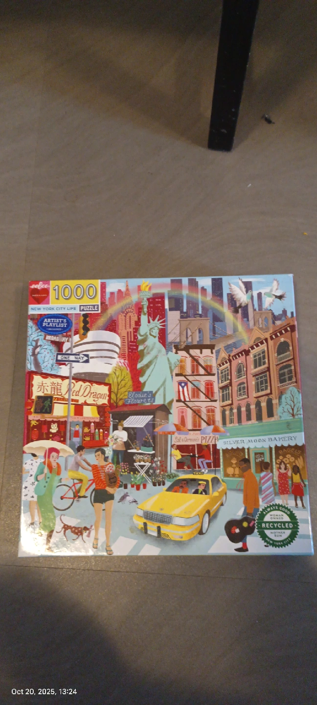 247Selling a 1000 piece puzzle called New York City Life! It's from the Artist's Playlist series and features a vibrant scene. The puzzle is made with recycled materials, which is pretty neat