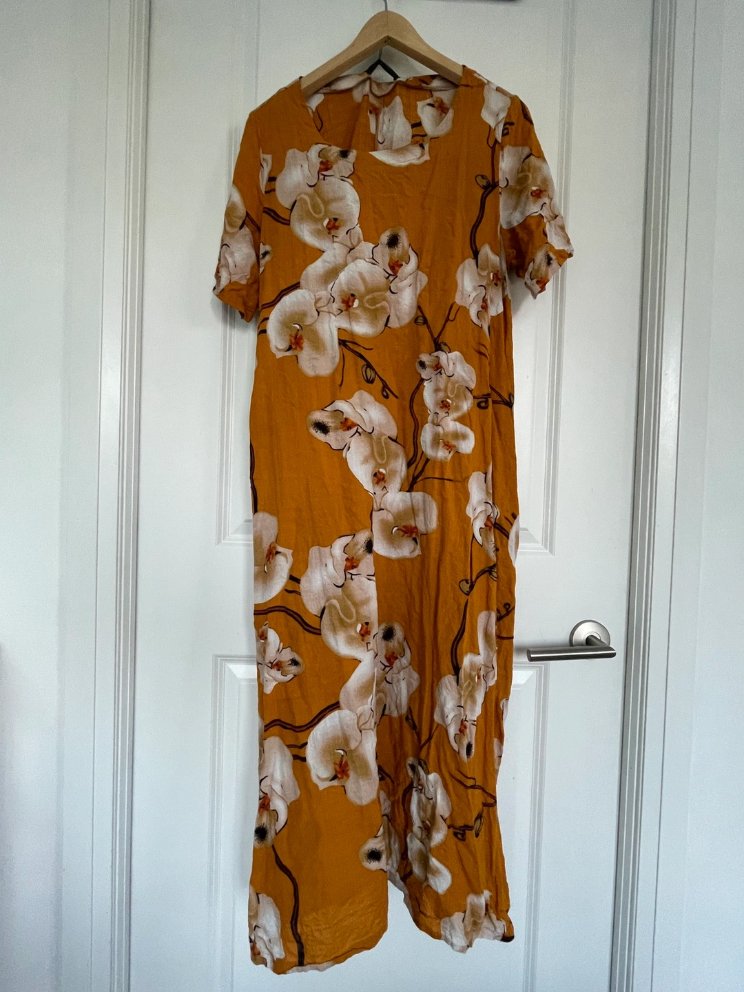 Size XXL but I’m usually size S/M and I wore it oversized. Perfect for hot summer days since it’s flowy and comfortable. Cute pattern and it has pockets too!