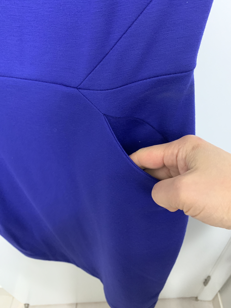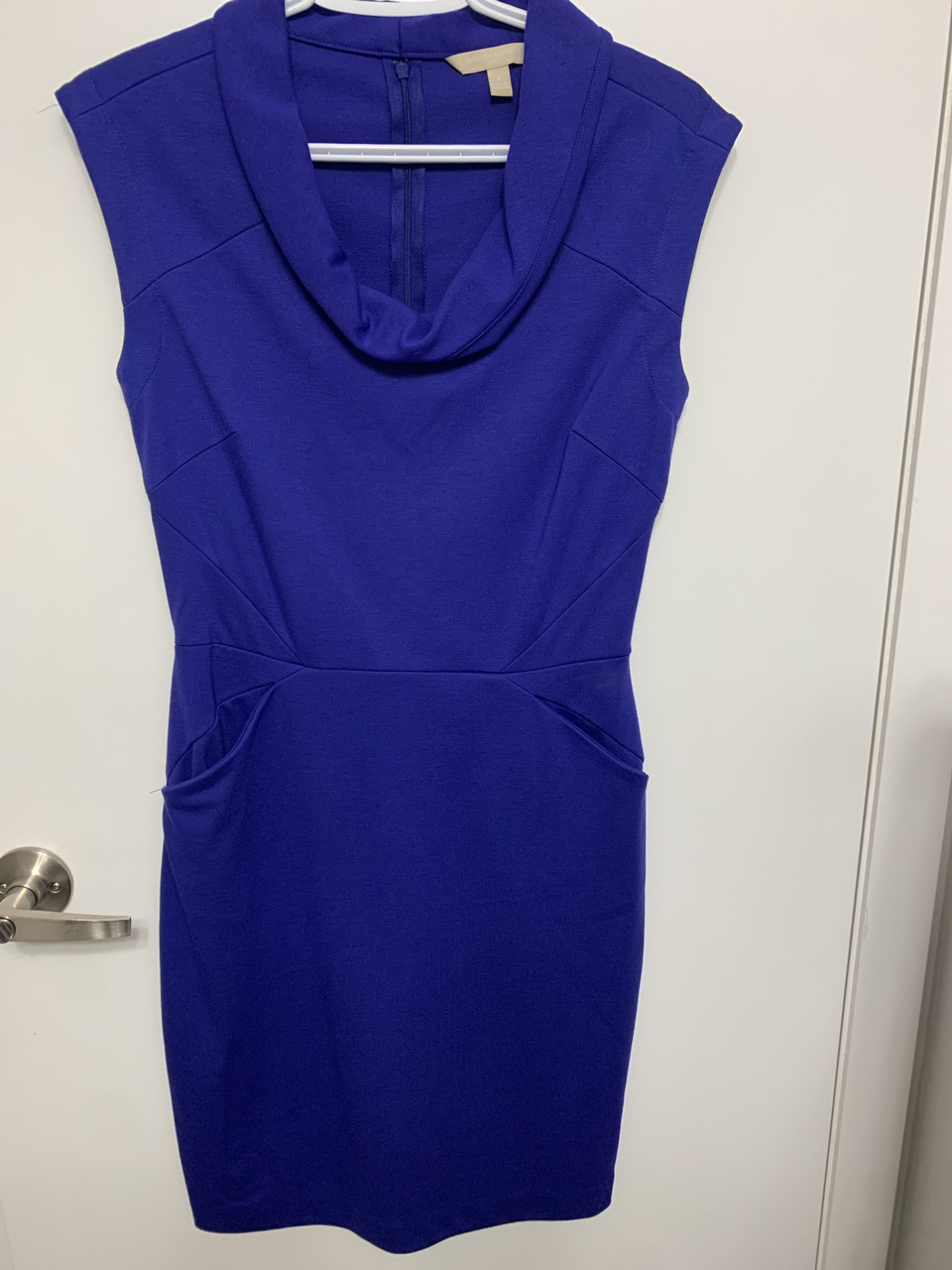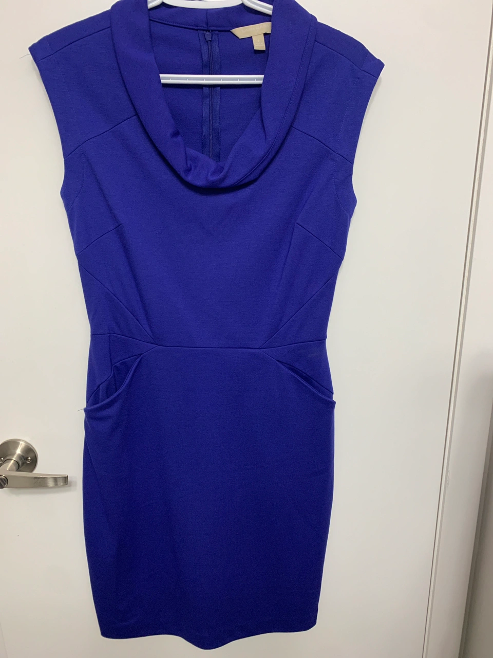 Beautiful Cobalt Blue Banana Republic Dress in Size 2 Stretchy with two functional pockets in the front. Cowl neck in the front Midi Length Size 2 New without tags