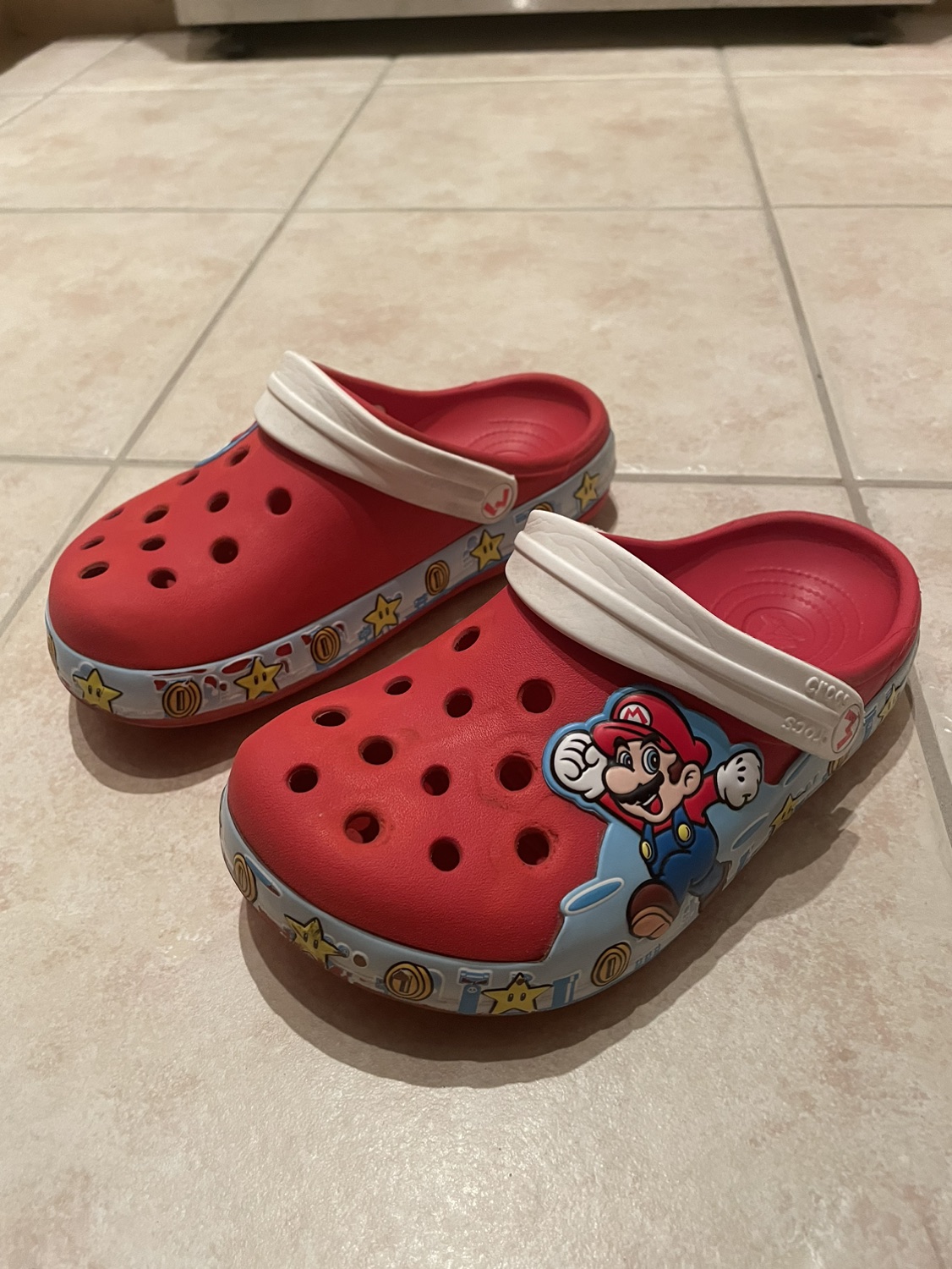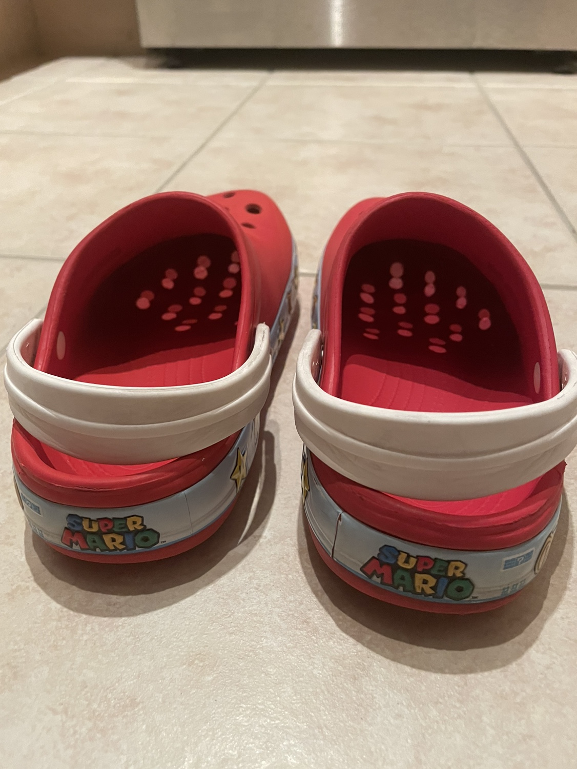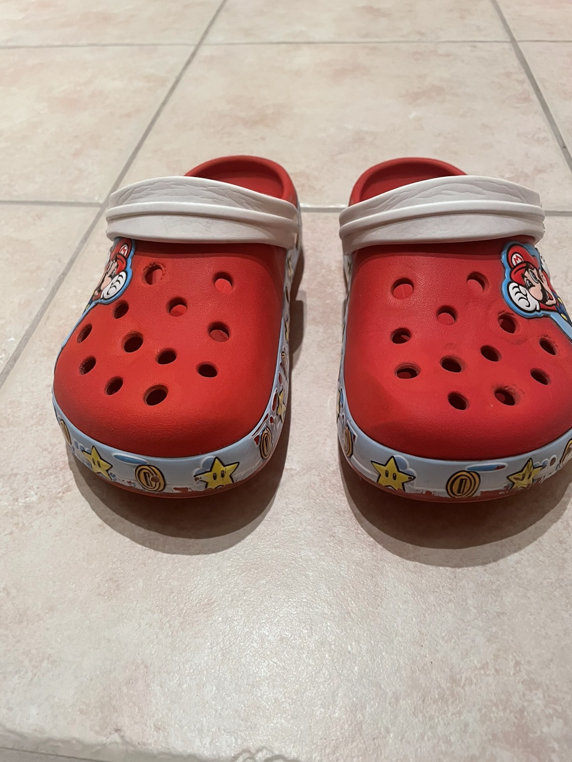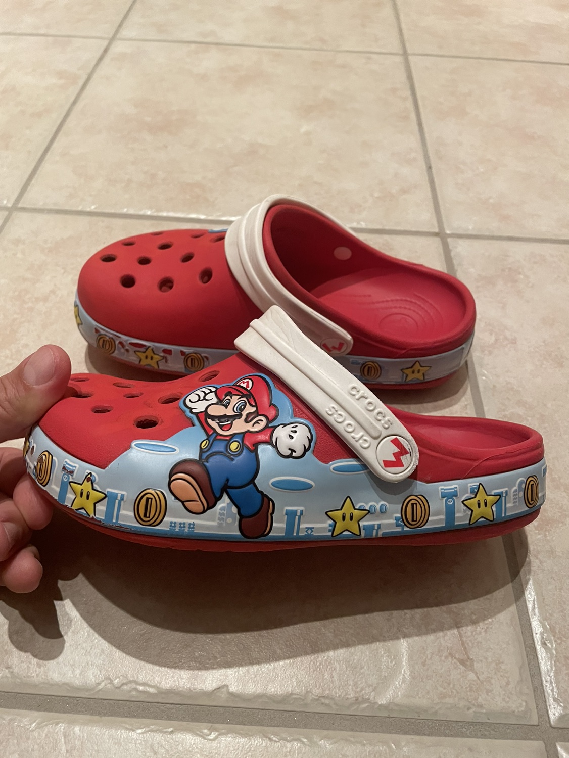 150Original super Mario edition crocs for kids Very good condition Most likely age 7+ Smoke &pet free home