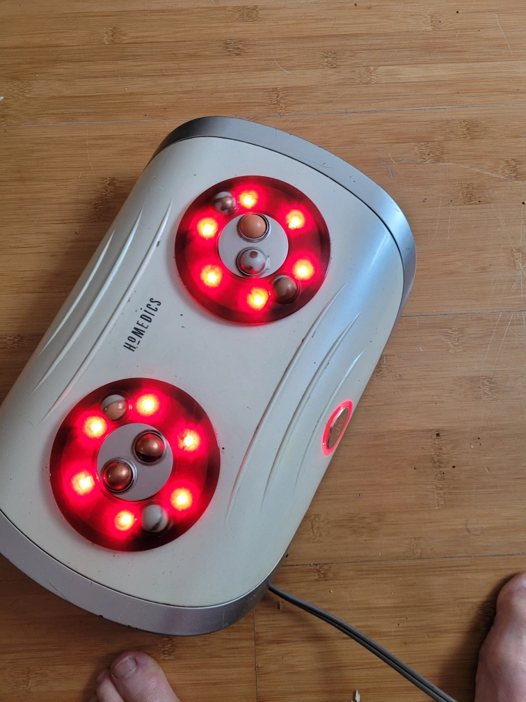 this is marvelous for restoring feet health. relaxes and massages sore feet with moving shiatsu rollers and heat. works perfectly. sanitized. Great Christmas gift. I have other Shiatsu products and am decluttering. cost over $60 brand new.