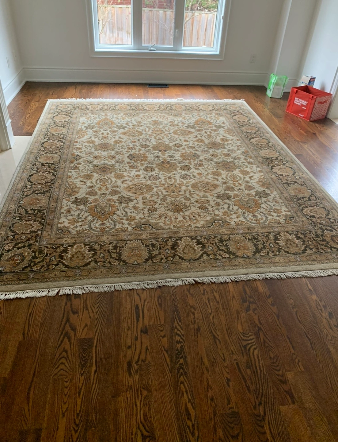 This rug was gently used and was in a smoke-free pet-free home. If you want to add a touch of beauty to your home then this is it.