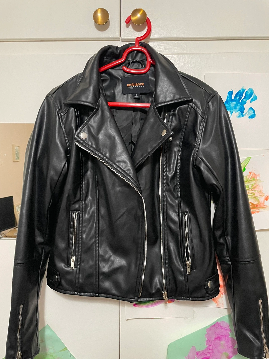 Bought this jacket 10 months ago I only wore it 2 or 3 times before my pregnancy weight gain. Selling because it’s too small still in great condition. Not real leather