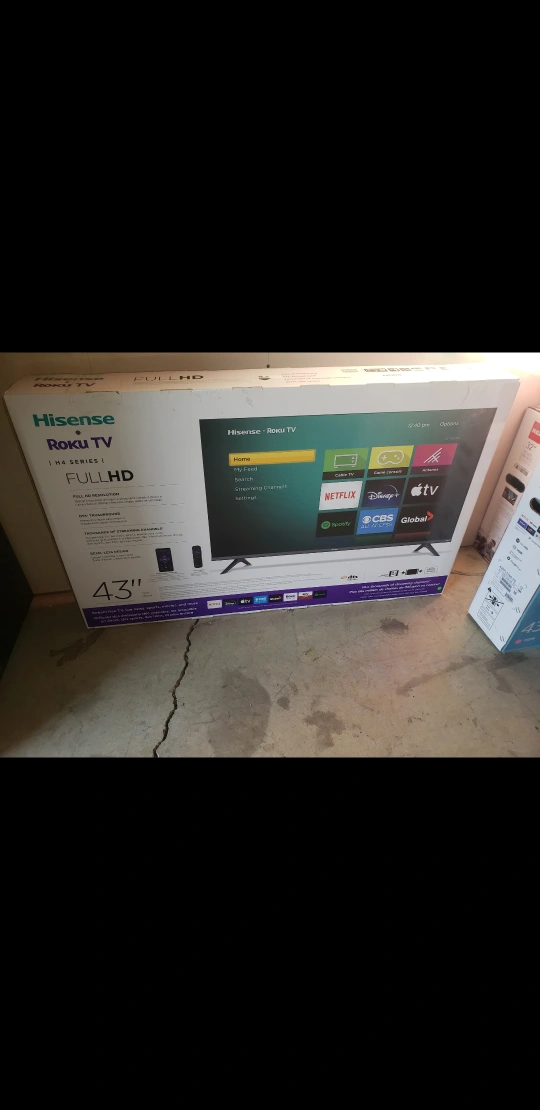 This is a brand new open box 43 inch HISENSE 4K Roku Smart TV amazing sound and picture Quality.