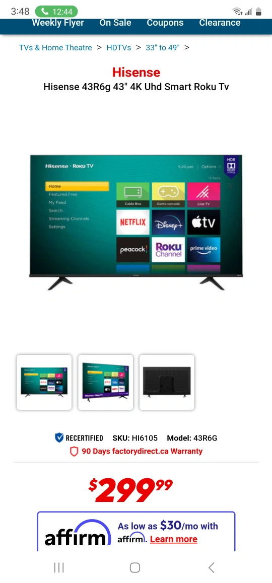 NEW HISENSE 43" 4K ROKU Smart TV ONLY $249.99 No TAX FIRM