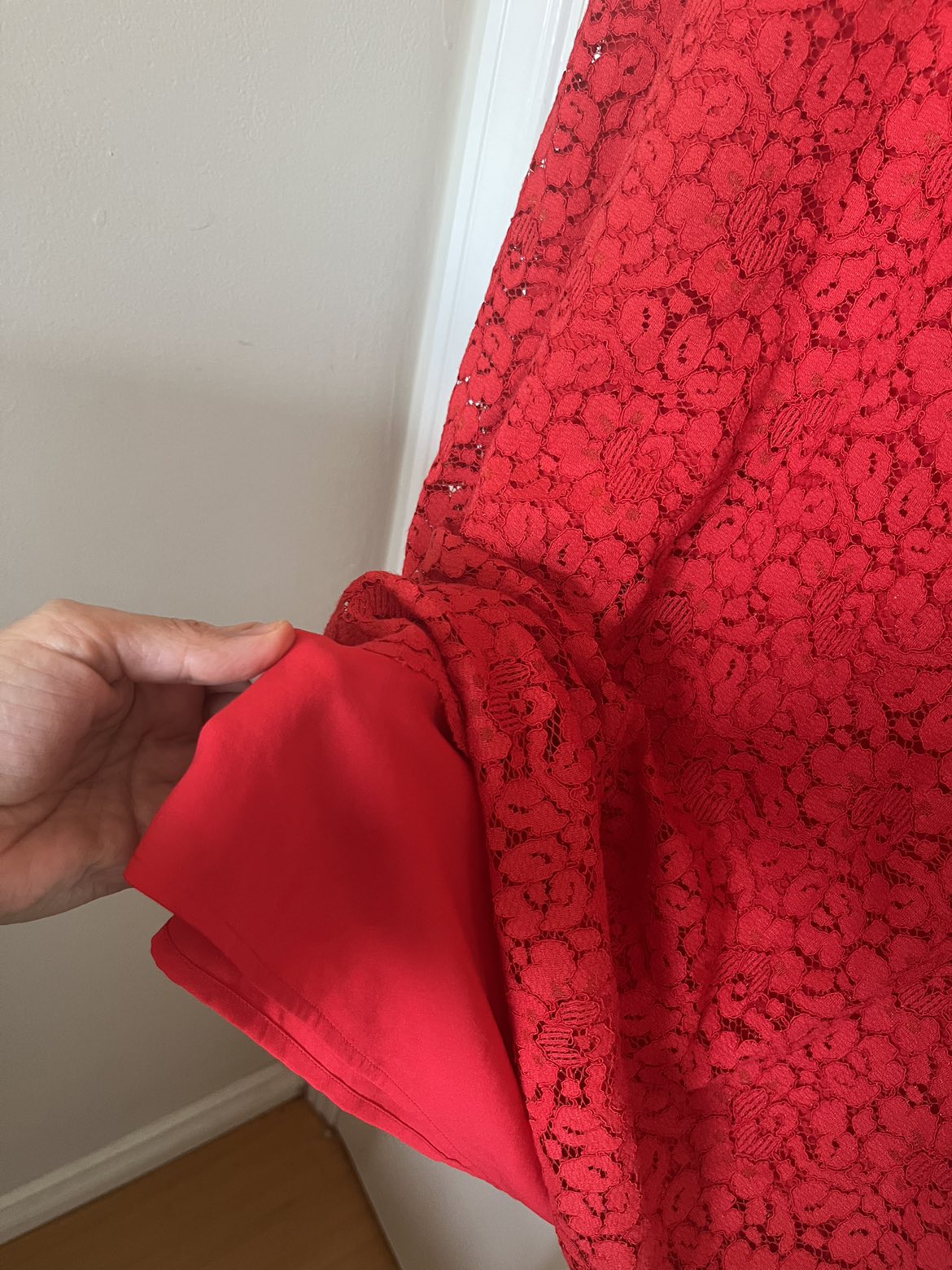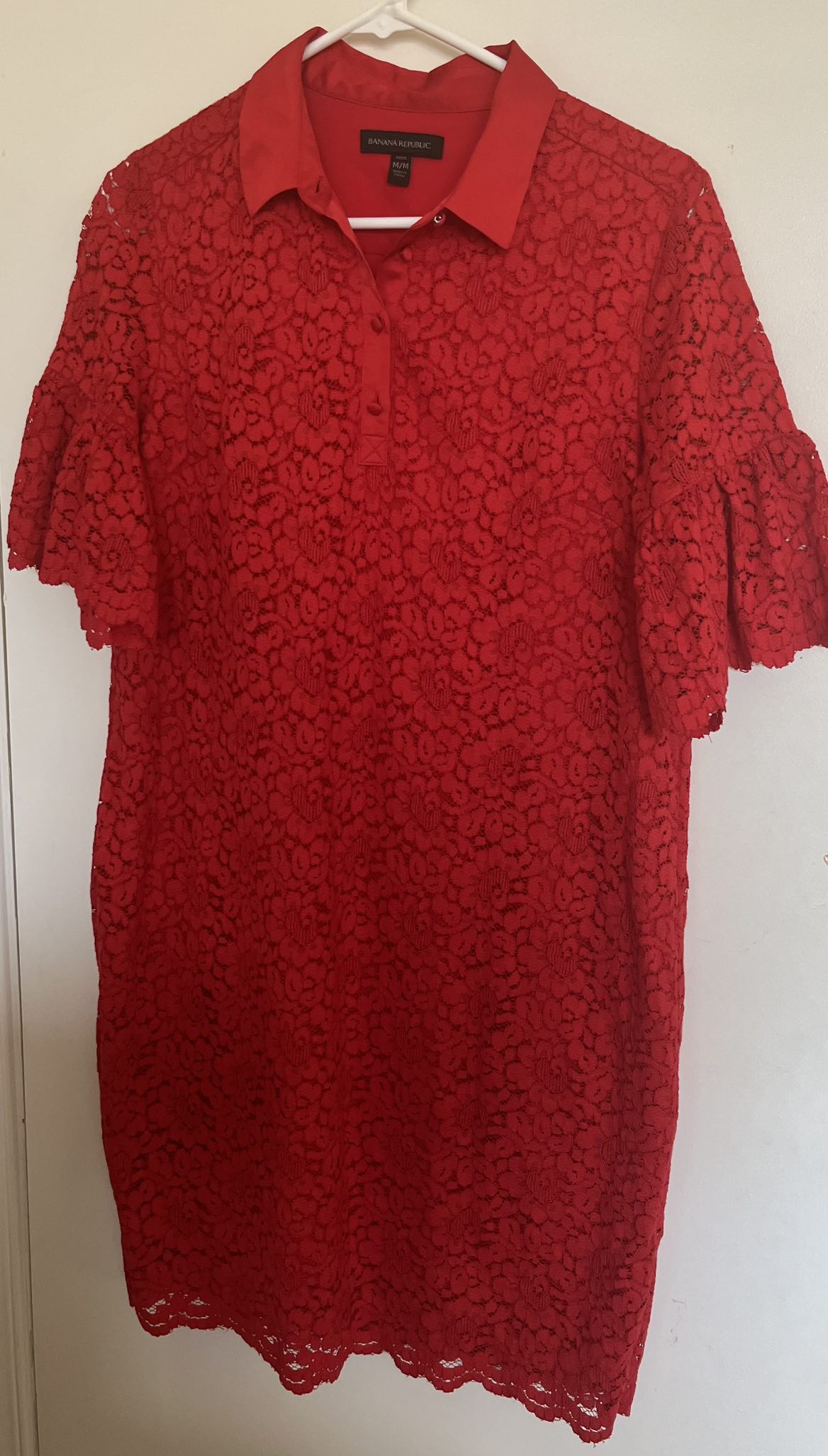 460I bought This really pretty and midi length dress from banana republic but I didn’t wear it Doesn’t fit me well .material is fine lace and has a good quality and soft fabric linings If you are interested to buy this pretty dress hurry up it will not available after September 14