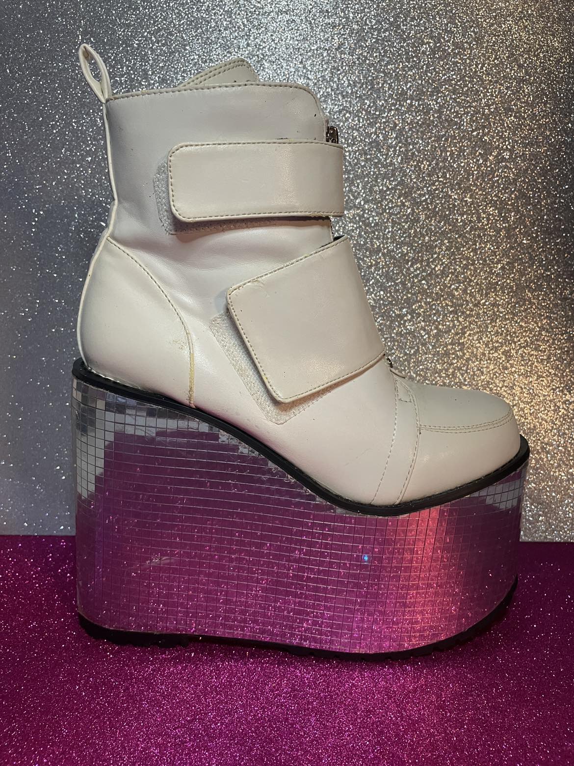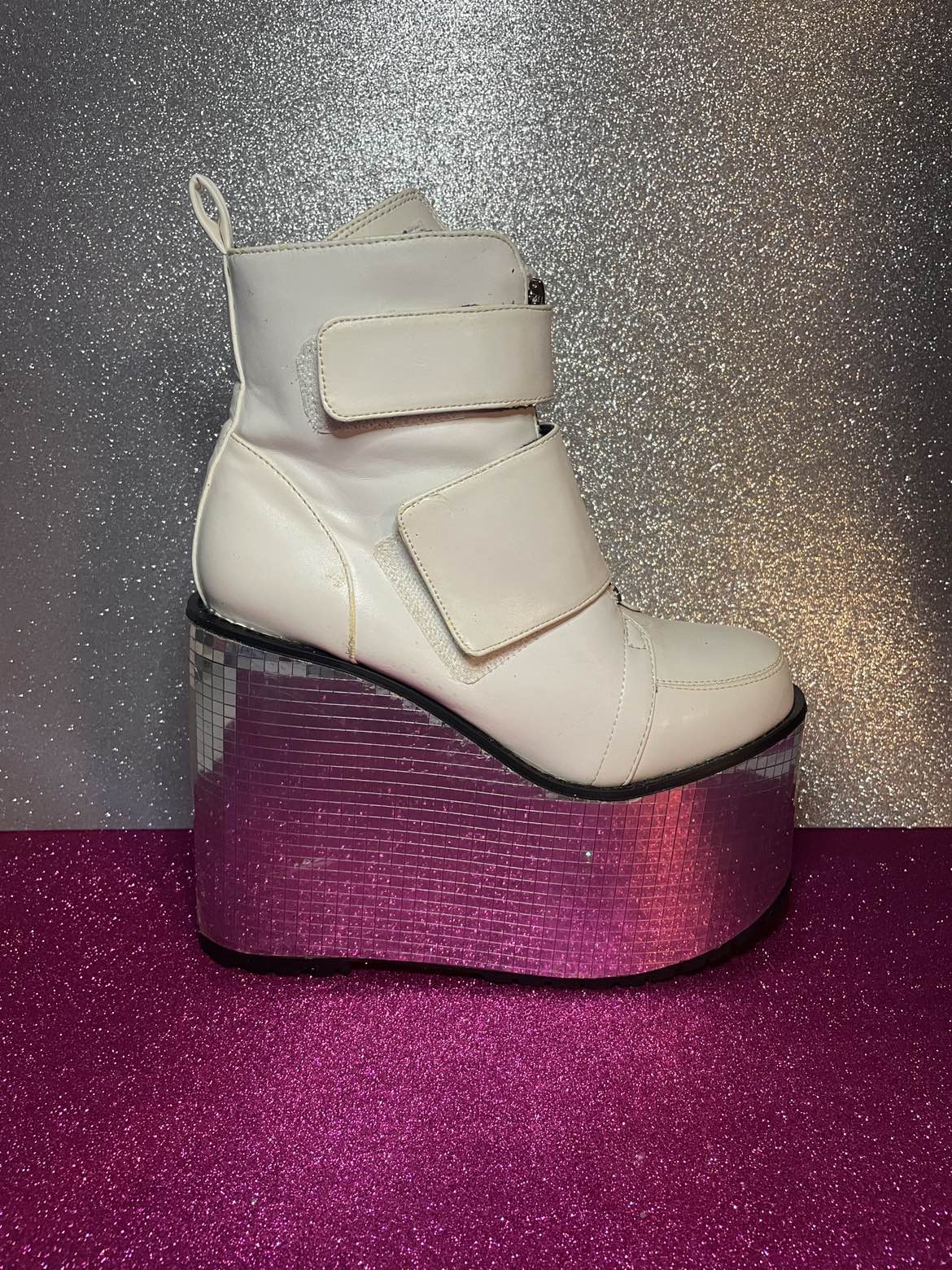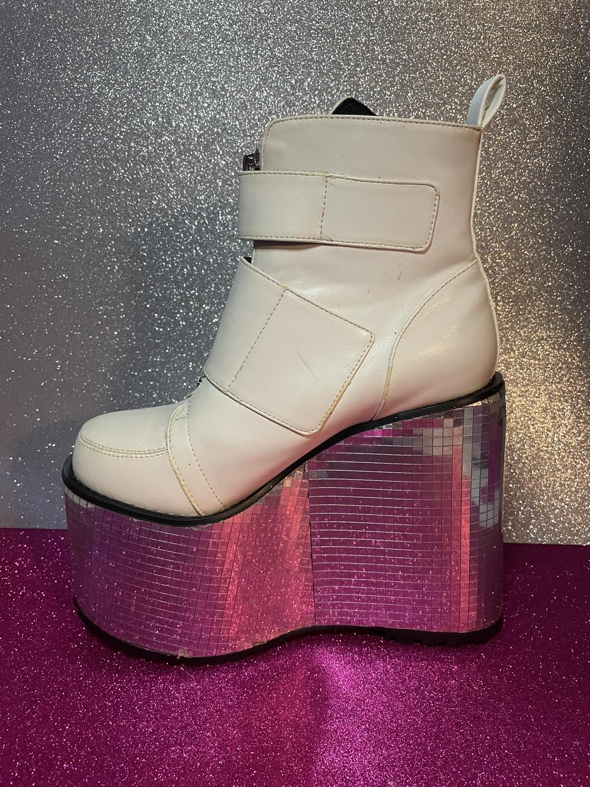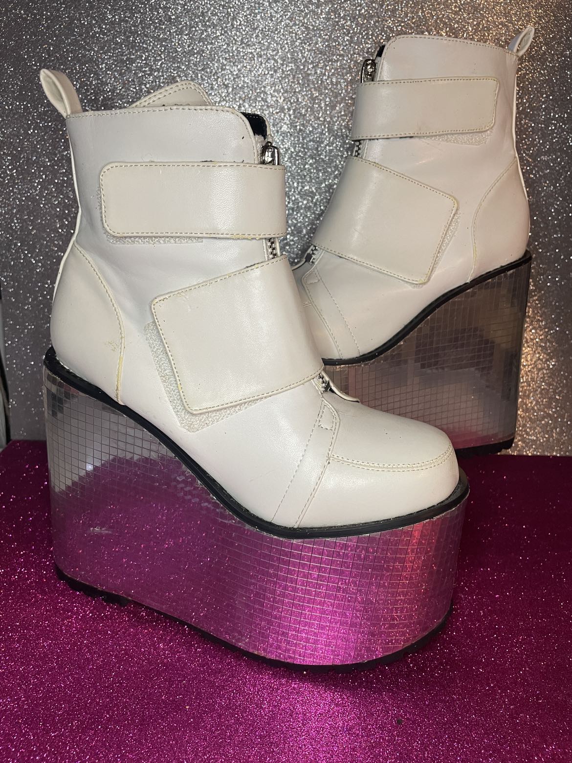 1 / 81 / 8Buy & Sell7 Womens White Platform Disco Bottom Boot7 Womens White Platform Disco Bottom Boot$70Size 7 women’s white faux leather disco platform boot. Used one time for a photo shoot. Sterilized and clean. Available for pick up only.ConditionLike newSize7WHERE TO MEETHalal-N-OutView MapSELLERverifiedMicheleBushwick1378 reviews0 chats·0 favorites·49 viewsSEND CHAT TO SELLERHi Michele! I’m interested in your listing.Hi Michele! I’m interested in your listing.Get the Karrot app to chatSign In to chat