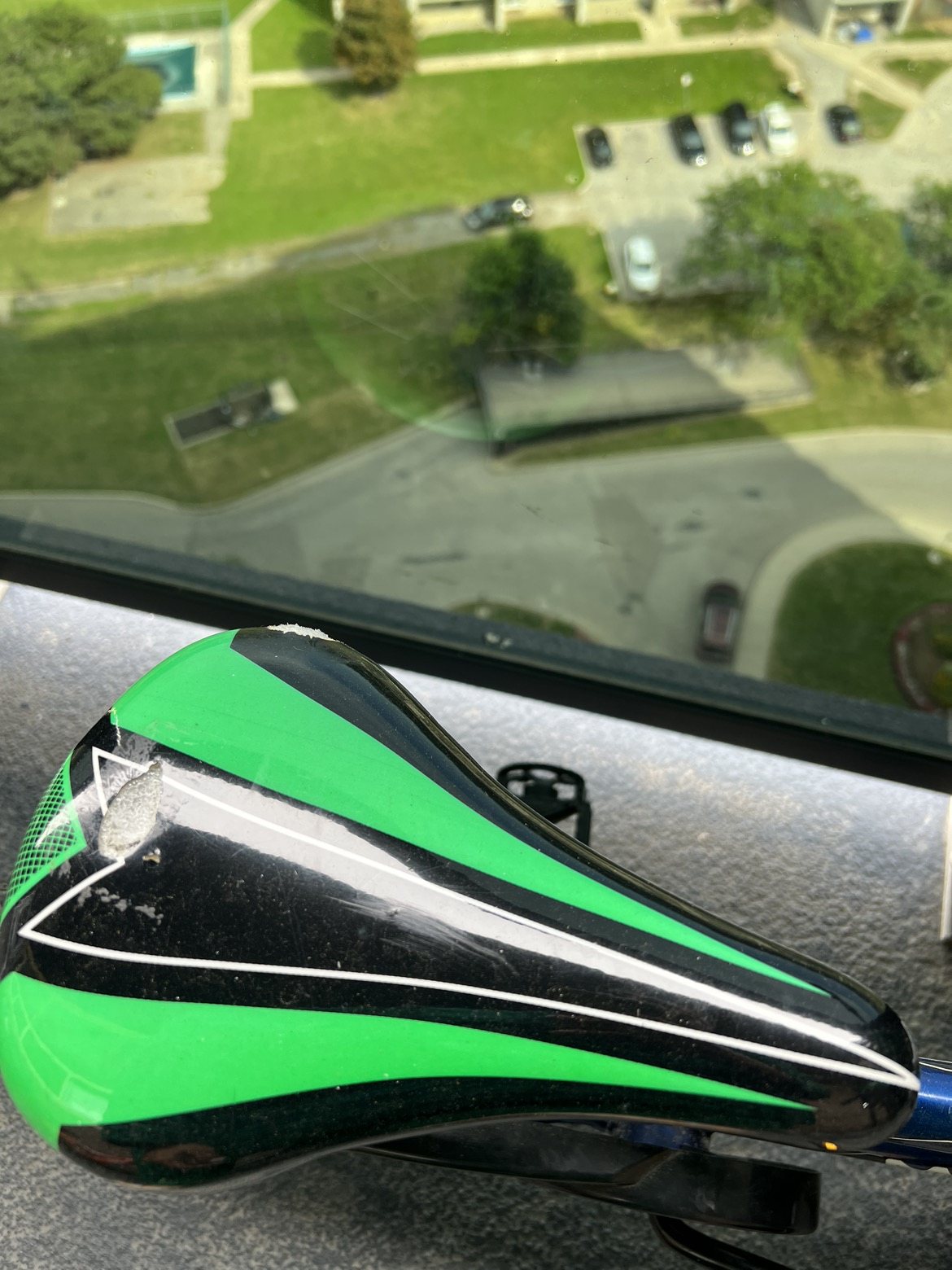 152Kids bicycle in green. Seat has two scratches as shown. Comes with free support wheels which I removed recently.