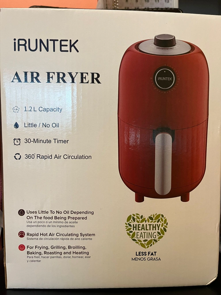 1 in black 2 in red all brand new! 45 each iRUNTEK Small Mini Air Fryer, 1.2L Product Dimensions11.8"D x 7.1"W x 7.1"H Capacity1.3 Quarts MaterialAcrylonitrile Butadiene Styrene (ABS) Recommended Uses For Product: Bake serious inquiries only **update I have 1 red left