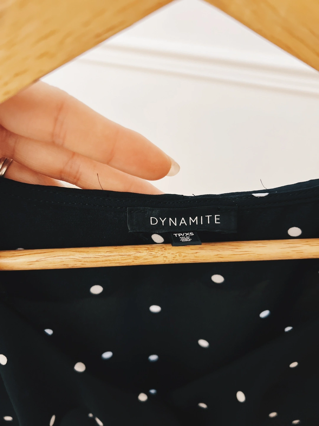 15✔️ Versatile in style ✔️ Excellent quality, great shape ✔️ Super fun to wear as business casual or formal ✔️ Colour black with white polka dot design ✔️ Size XS