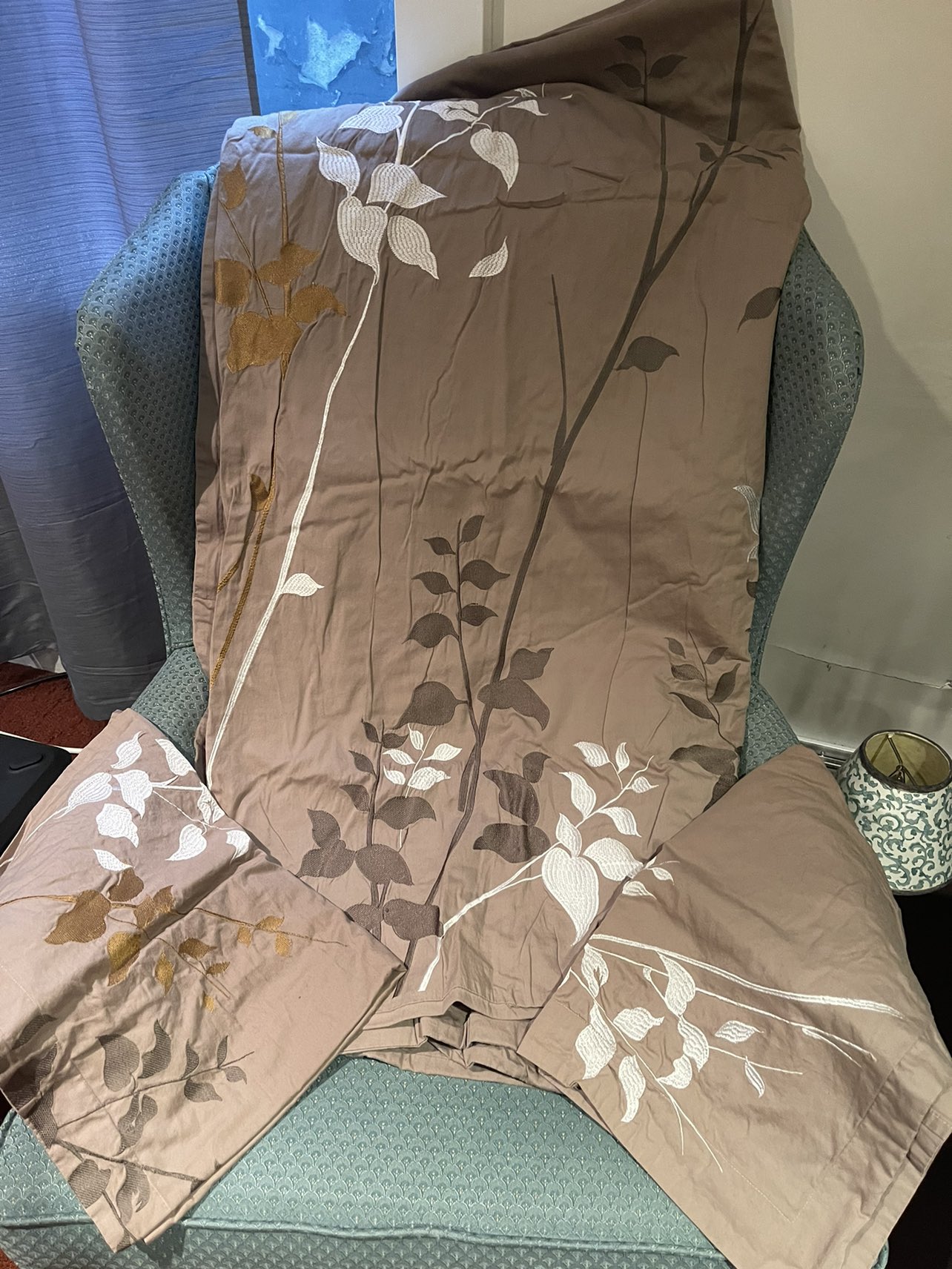 Brand new queen size bedsheet with pillow cases and duvet cover with pillow cases and 1 pillow to sell. Moving houses so need to gone. Pu Shaughnessy area.