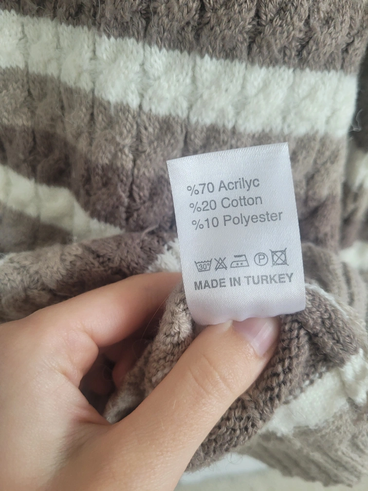 Very warm women's acrilyc turtleneck sweater in brown-beige colours. Size XS