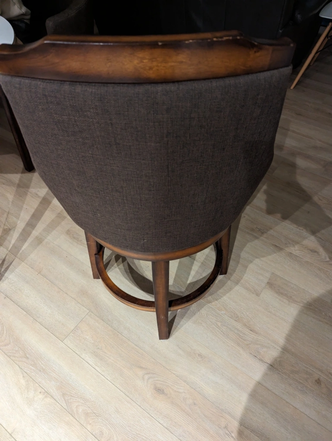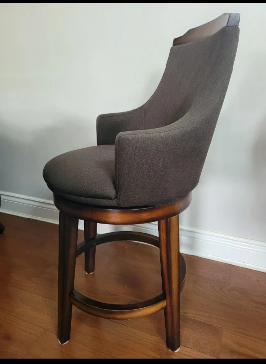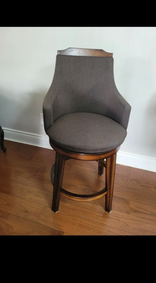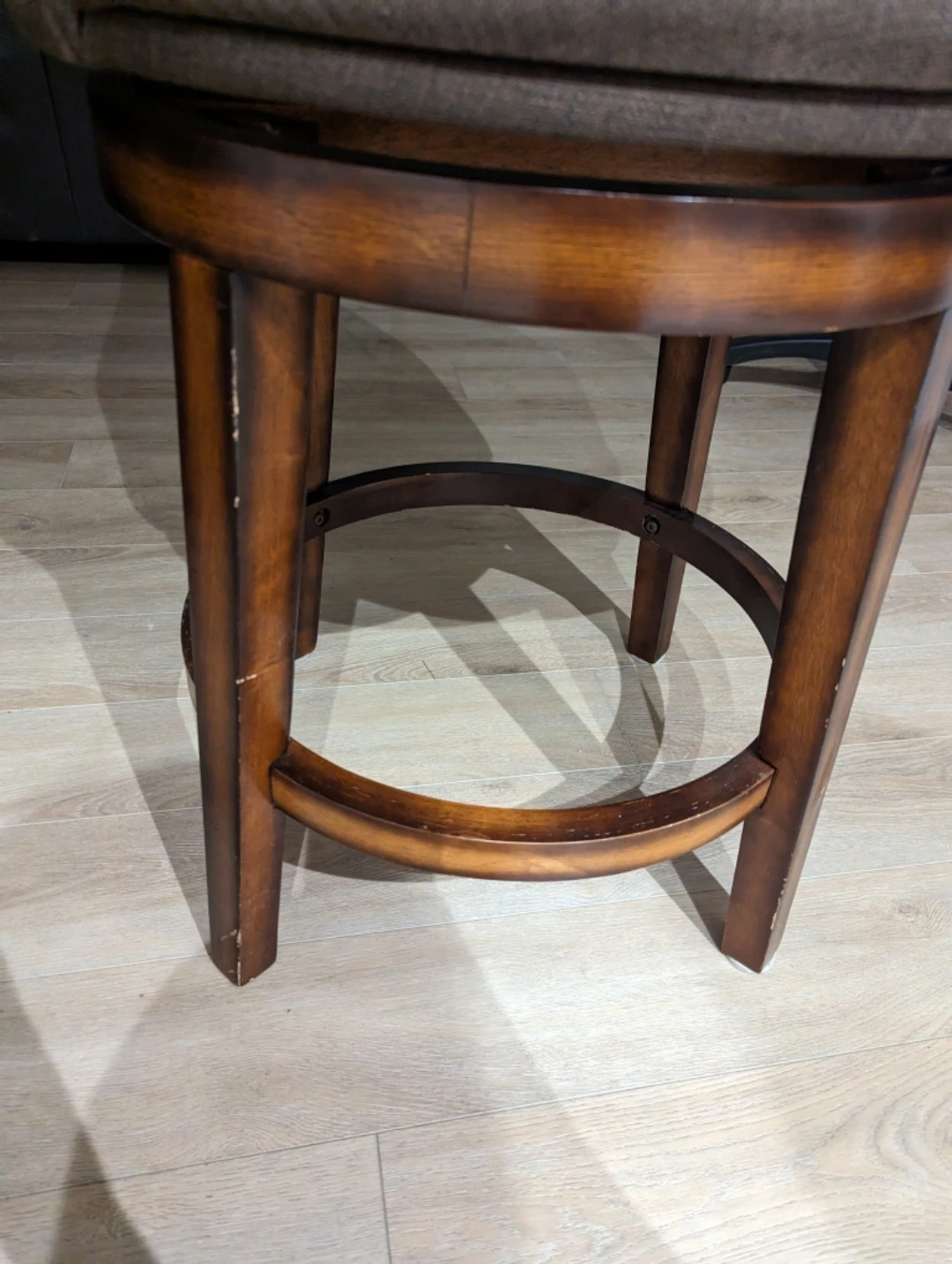 Solid wood legs, wooden frame, contoured design and sloped arms, ergonomic backrest, sturdy footrest, 26" seat height, 360 degrees swivel chair that provides comfortable sitting experience. Durable and elegant seat. was $40 for each. now $29. moving sale