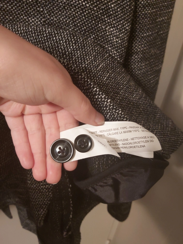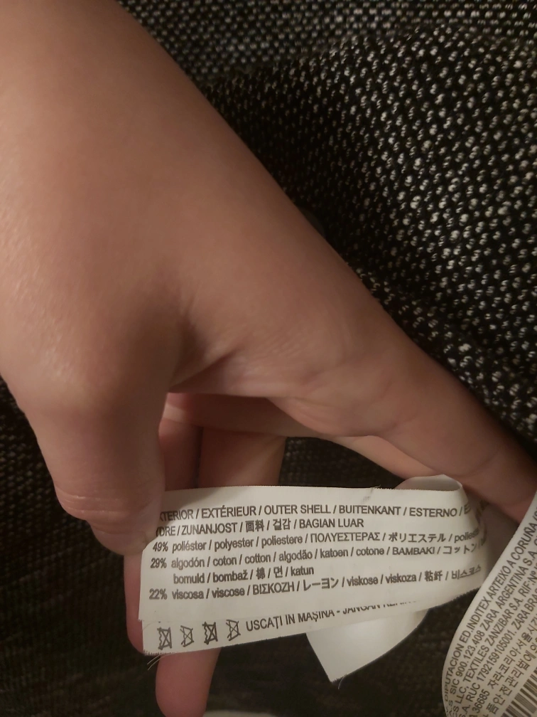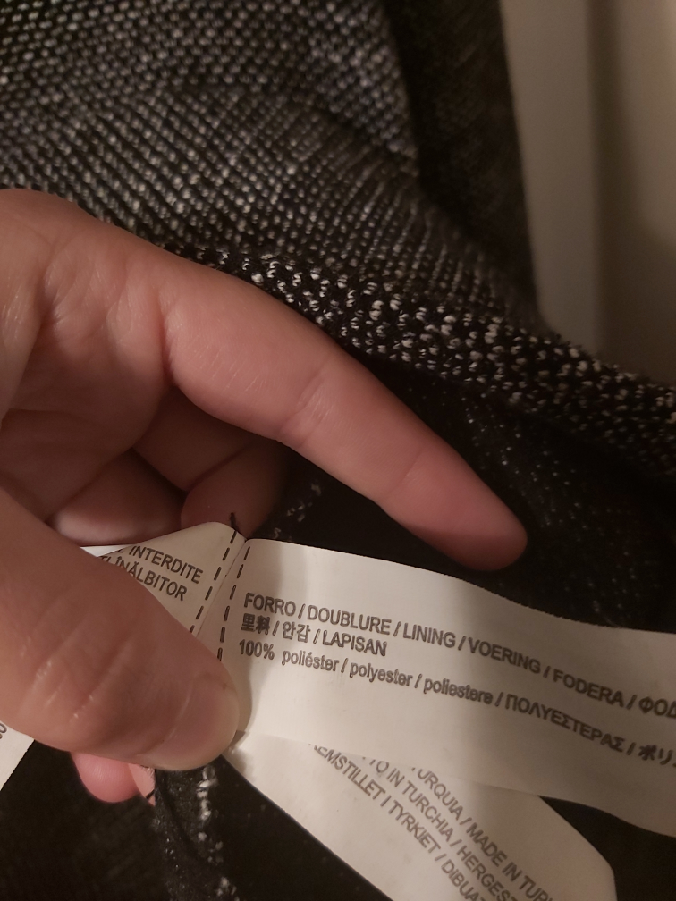 Composition/material: Outer shell is 48% polyester, 29% cotton and 22% viscose; lining is 100% polyester