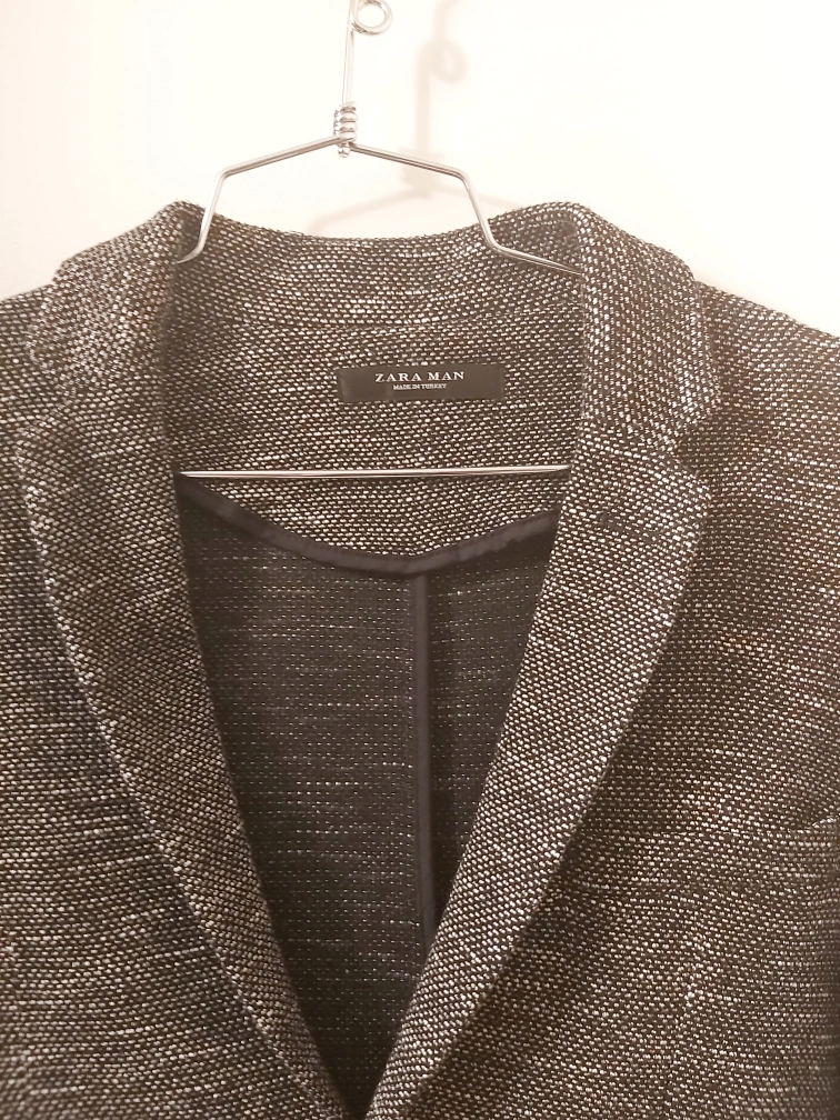 Colour: Tweed style or micropatterned / salt and pepper (white and black and grey)