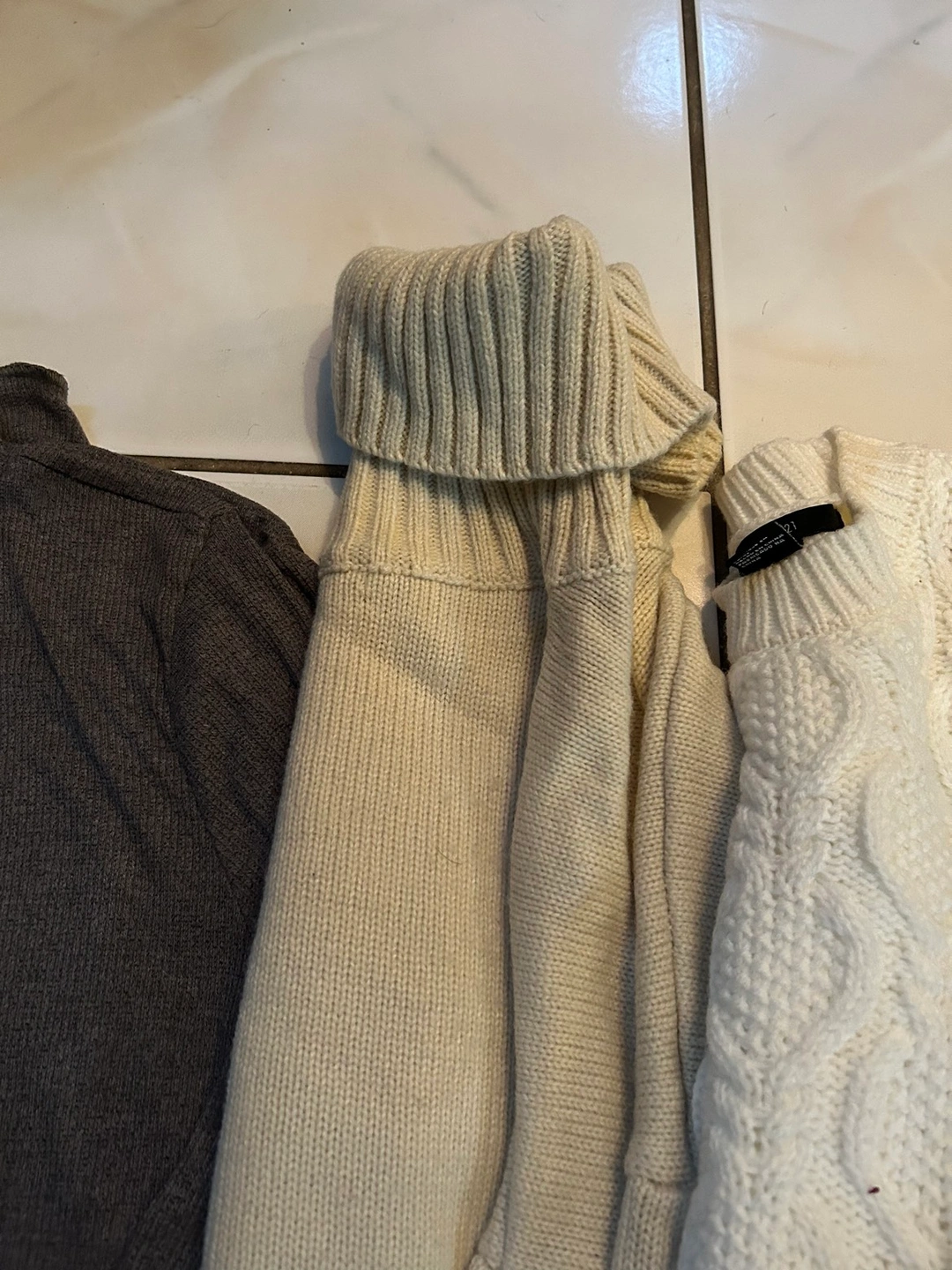 2. Cream loose-fit turtle neck. Thicker,warmer material - size M
