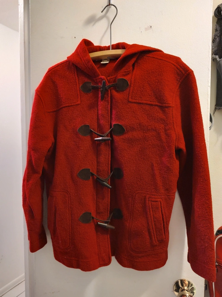 Red Riding Hood Wool Jacket Clearing out my closet of fall jackets almost all are $10 each so check out my other listings size petite large in excellent condition, very warm, could even be used in the winter layered up, as wool is very insulating. open to trades, always happy to trade for candles or coffee *Cash Only