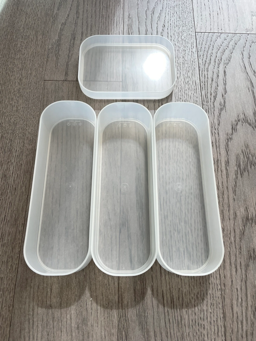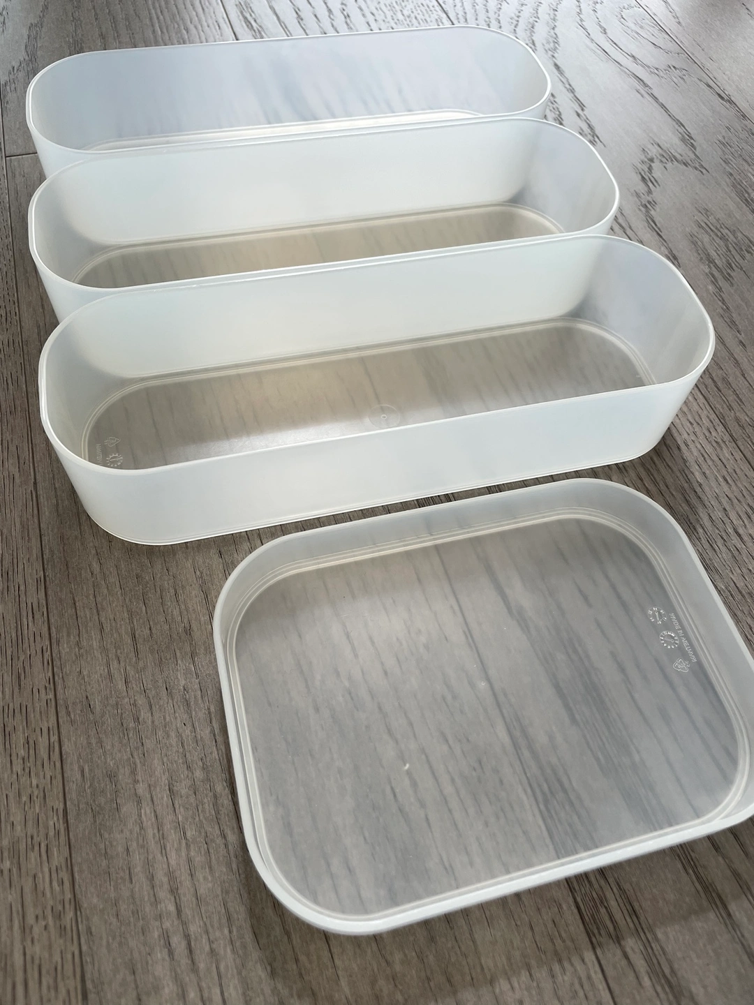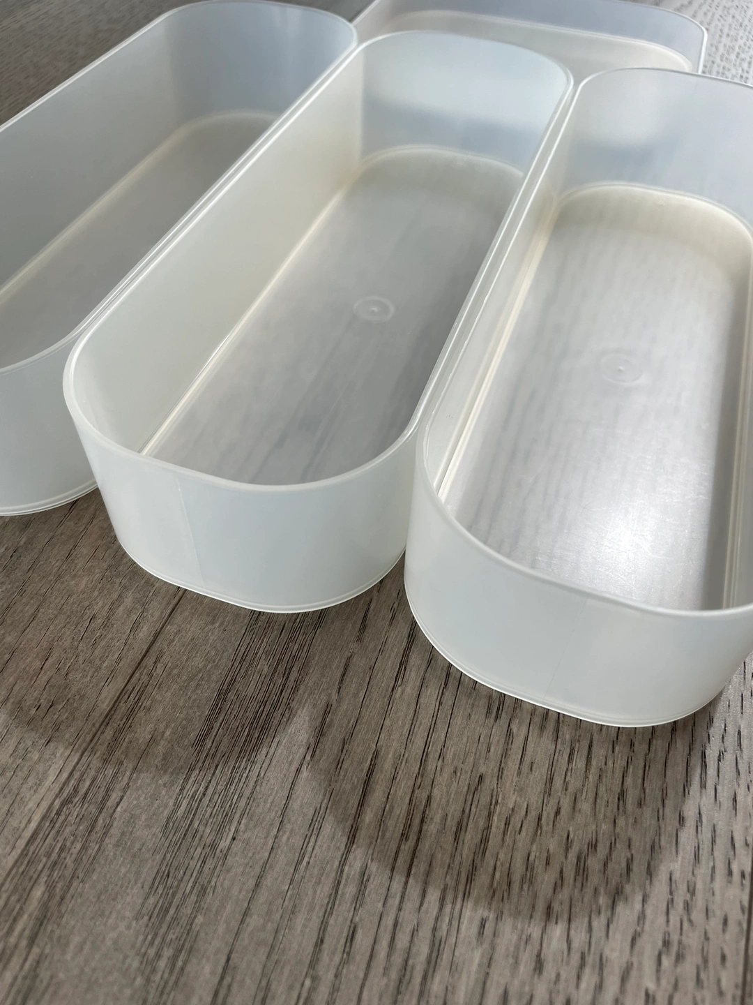 Makeup organizers made from a translucent material that is sturdy, and easy to clean. The translucent material also allows you to quickly see the contents inside, without adding too much visual clutter.