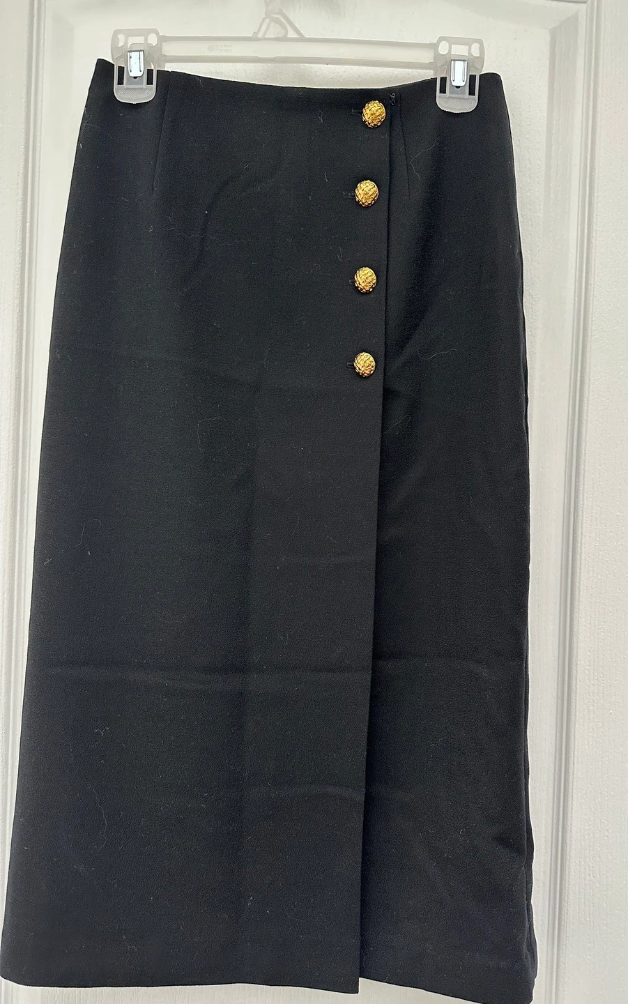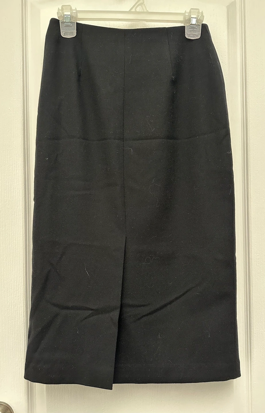 Laura Louben Black Pure Wool Elegant Wrap Skirt; back split with a pleat